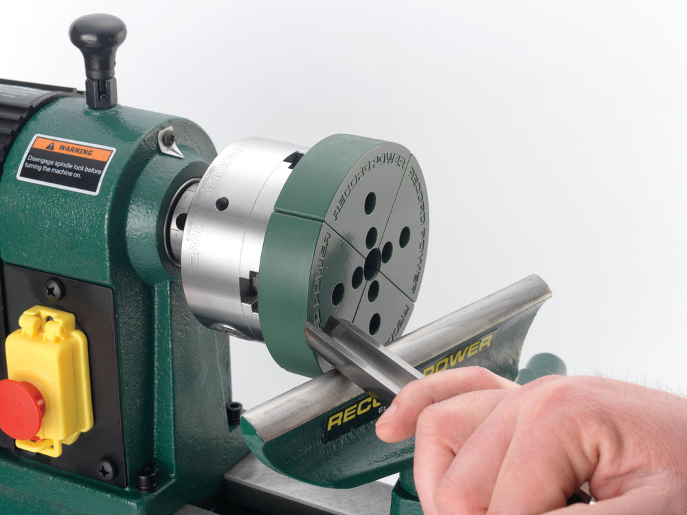 Le ganasce morbide in plastica Record Power sono progettate per offrire la massima personalizzazione nella presa del pezzo durante la tornitura del legno. Realizzate in nylon ad alta resistenza, sono pensate per essere lavorate direttamente con utensili da tornio standard, consentendo al tornitore di sagomarle secondo esigenze specifiche.