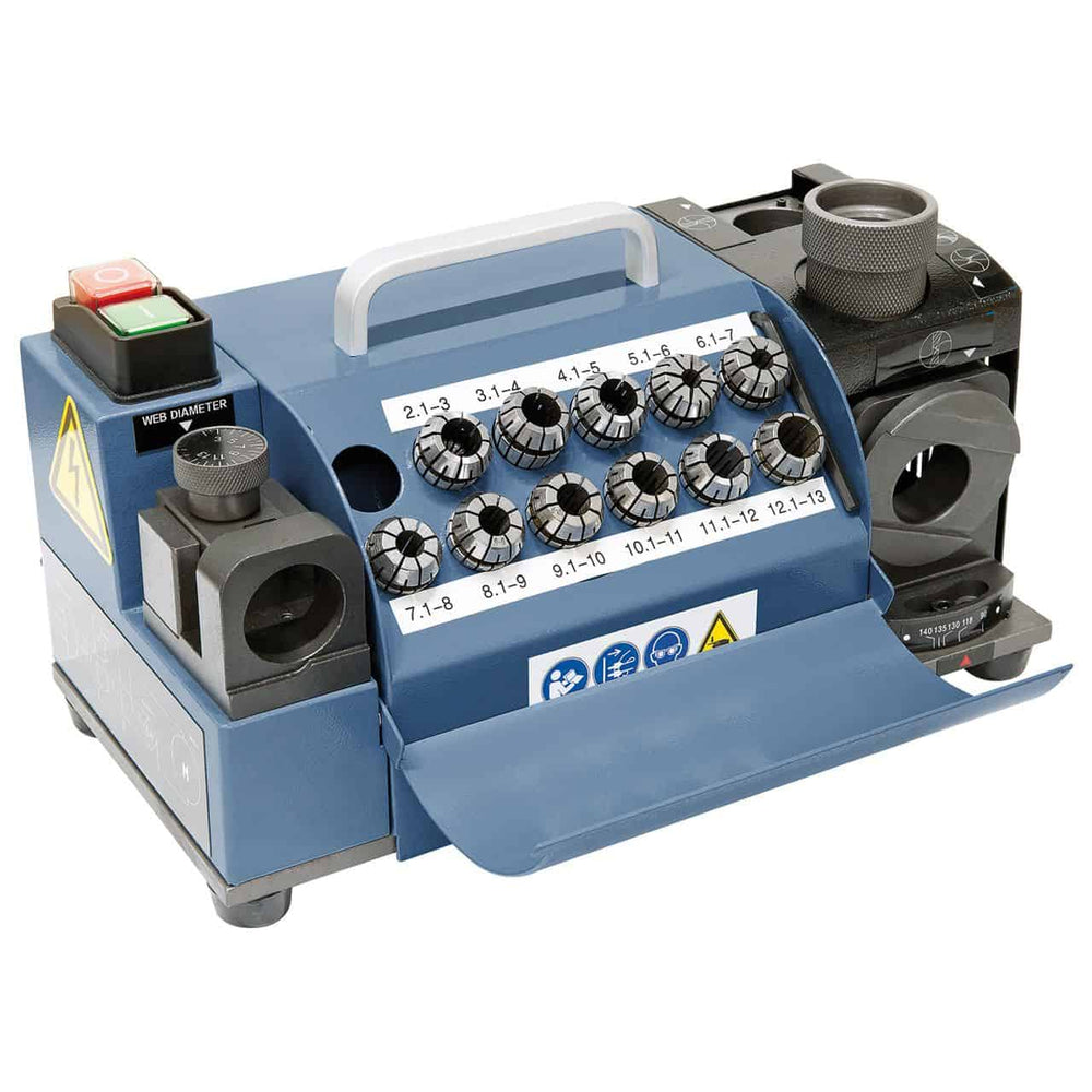 • Affilatrice per punte HSS e metallo duro (2–13 mm)