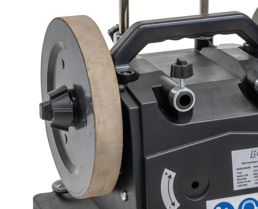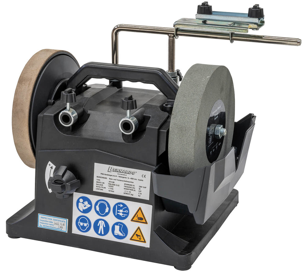 La Bernardo NTS 200 è un’affilatrice a secco-umido progettata per garantire affilature precise e sicure. Grazie alla mola in corindone bianco da 200 mm che lavora in vasca ad acqua (rimovibile), l’utensile viene raffreddato durante la lavorazione, evitando il rischio di surriscaldamento o di rinvenimento. La velocità ridotta di 115 giri/min riduce il rischio di scintille e assicura un’elevata sicurezza operativa. È dotata di supporto universale regolabile in altezza, compatibile anche con accessori di altri produttori, e di disco in pelle per la lucidatura. Ideale per coltelli, forbici, asce, scalpelli, lame di pialle e utensili da tornitura, la NTS 200 è adatta ad hobbisti esigenti, artigiani e professionisti che necessitano di lame affilate in breve tempo. Con un motore da 120 W e struttura robusta in acciaio, unisce design moderno, prestazioni elevate e massima affidabilità.