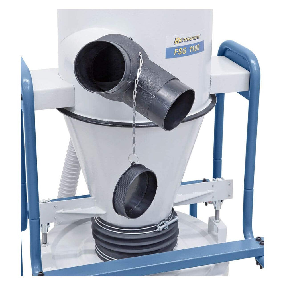 L’aspiratore ciclonico Bernardo FSG 1100 è una soluzione efficiente per la pre-separazione di polveri e trucioli generati durante la lavorazione del legno. Compatibile con impianti di aspirazione da almeno 1,5 HP, riduce al minimo la presenza di polveri sottili e protegge i filtri principali, prolungandone la durata. Grazie al contenitore di raccolta estraibile da 118 litri, la sostituzione del sacco è semplice e rapida. Il design ciclonico garantisce un flusso d’aria ottimale, separando efficacemente le particelle più grandi prima del filtraggio finale. L’ispezione del livello di riempimento avviene tramite oblò trasparente, mentre il carrello integrato ne facilita lo spostamento. Robusto, economico e versatile, il FSG 1100 è ideale per falegnamerie, officine e laboratori con sistemi di aspirazione già esistenti.