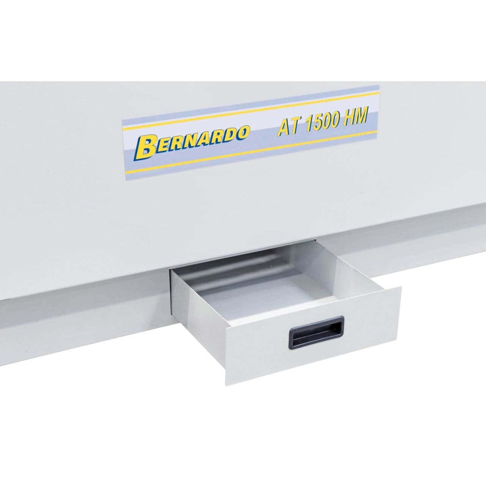 Il Bernardo AT 1500 HM è un banco di aspirazione professionale con doppio motore, progettato per aspirare in modo efficiente polveri e trucioli durante le lavorazioni di legno e metallo. Equipaggiato con 2 motori da 0,75 kW (2x 1,0 CV) e un flusso d’aria complessivo di 2x 2500 m³/h, garantisce un’aspirazione potente e continua. La superficie di lavoro misura 1550 x 550 mm, con altezza ergonomica di 825 mm e una capacità di carico fino a 225 kg. Il banco è fornito con 4 filtri specifici per legno e metallo, interruttore ON-OFF, appoggi del piano in gomma antigraffio e 6 fermi per il pezzo, assicurando stabilità e sicurezza durante la lavorazione. Con una struttura robusta e compatta (peso 105 kg), l’AT 1500 HM è la scelta ideale per falegnamerie, officine e laboratori che richiedono prestazioni elevate e affidabilità costante.