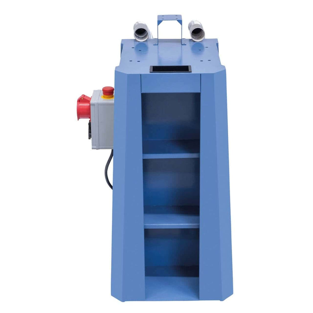 Il basamento Bernardo UGA 1 con aspirazione integrata è la soluzione compatta e funzionale per combinare sostegno macchina e sistema di aspirazione in un unico dispositivo. Grazie all’avviamento automatico, il sistema si accende e si spegne insieme alla macchina collegata, semplificando l’uso e aumentando l’efficienza. Con una capacità di aspirazione di 190,8 m³/h e due attacchi Ø 50 mm, è ideale per collegare macchine di piccole e medie dimensioni come levigatrici e smerigliatrici. Il cassetto posteriore estraibile permette una facile raccolta di polveri e trucioli, mentre il serbatoio dell’acqua garantisce una filtrazione ottimale dell’aria, reimmessa pulita nell’ambiente di lavoro. La struttura compatta (340 x 420 mm di area di appoggio, altezza 805 mm) consente di risparmiare spazio, mantenendo una potenza di 1,5 kW con alimentazione trifase 400 V. Soluzione ideale per laboratori e officine con spazi ridotti ma alte esigenze di pulizia.