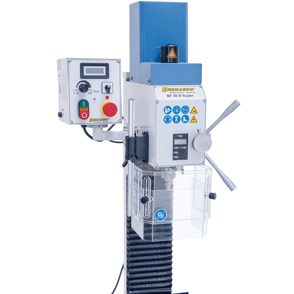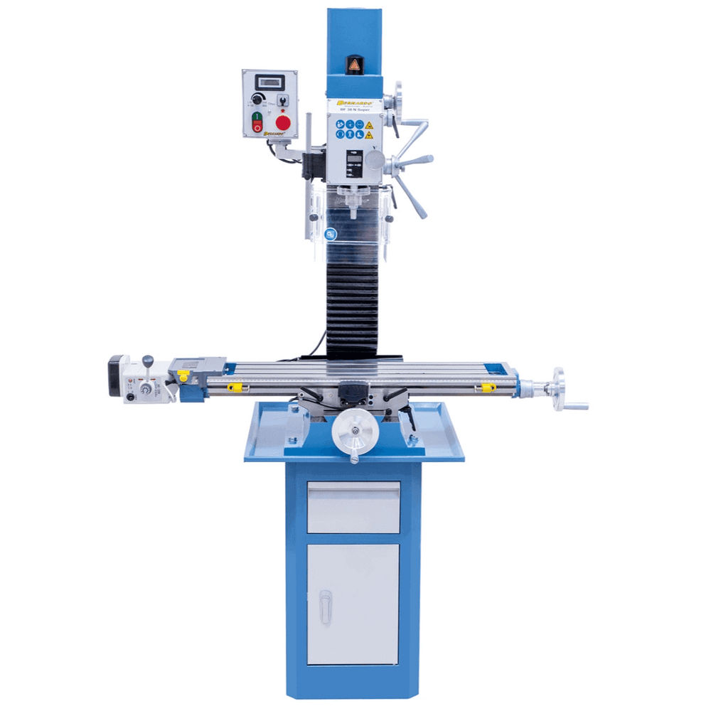 Dotata di indicatori digitali per velocità e corsa mandrino, protezione regolabile in altezza, luce LED e filtro EMC conforme CE, la BF 30 N Super rappresenta una soluzione completa e affidabile per officine e laboratori.
