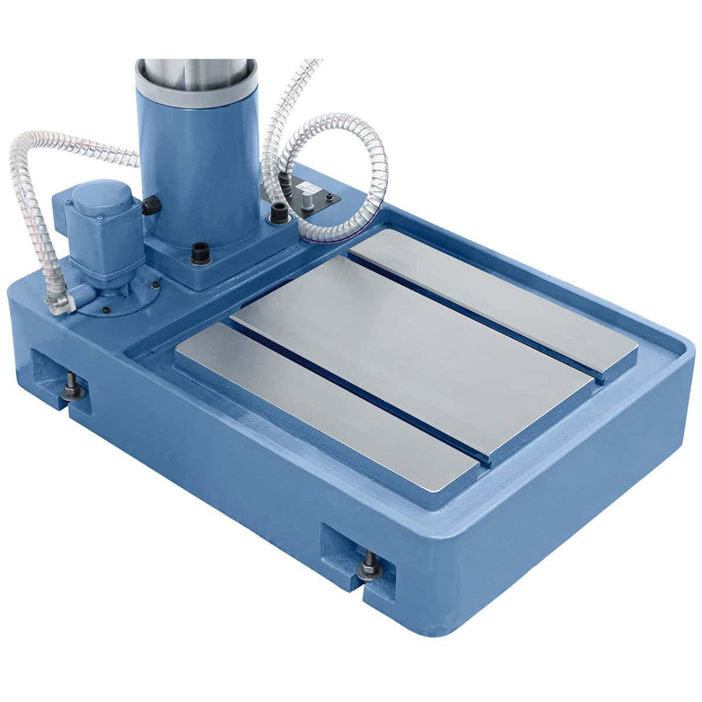 Inclusi di serie: avanzamento automatico del mandrino, dispositivo di filettatura, display digitale corsa mandrino, pompa di refrigerazione, protezione regolabile con microinterruttore e luce LED. Una macchina completa, adatta a officine e laboratori meccanici.