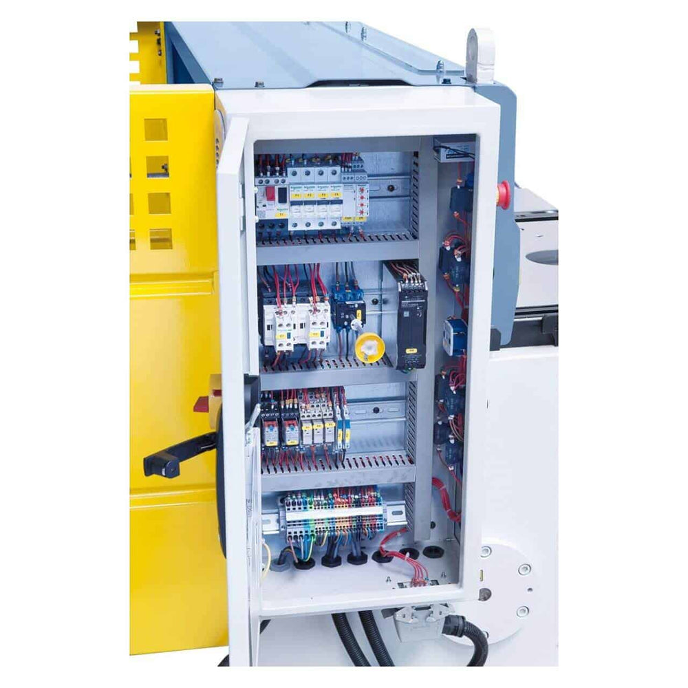La Bernardo MTA 1360 x 3 mm è una cesoia a ghigliottina motorizzata progettata per il taglio professionale di lamiere in acciaio, ottone, alluminio e rame fino a 3 mm di spessore. Con una lunghezza di taglio di 1360 mm e un angolo di taglio di 2°30’, assicura precisione e superfici pulite grazie alle lame doppie in acciaio di alta qualità. La regolazione rapida del registro posteriore fino a 750 mm tramite volantino e il piano di lavoro con rulli integrati garantiscono praticità anche nella gestione di pezzi di grandi dimensioni. La macchina è dotata di elevati standard di sicurezza, grazie a protezioni posteriori con fotocellule e al pedale con arresto di emergenza. Con una costruzione robusta in acciaio saldato e l’illuminazione della linea di taglio integrata, la MTA 1360 x 3 mm unisce efficienza, affidabilità e comfort operativo, risultando ideale per officine e industrie che necessitano di una cesoia professionale e durevole.
