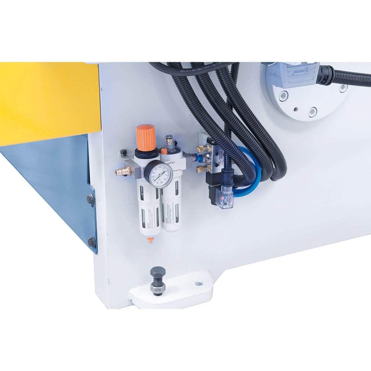 La Bernardo MTA 2560 x 2,5 mm NCC è una cesoia a ghigliottina motorizzata di fascia industriale, ideale per il taglio preciso ed efficiente di lamiere fino a 2,5 mm di spessore (400 N/mm²) e 2560 mm di lunghezza. È dotata di sistema pneumatico di supporto lamiera, che garantisce stabilità e precisione soprattutto con fogli sottili o di grandi dimensioni. Il registro posteriore motorizzato NC, movimentato da viti a ricircolo di sfere, e il pannello di controllo BRL 401.2 permettono regolazioni rapide e accurate. Le lame doppie in acciaio di qualità assicurano tagli puliti e senza bave, mentre le fotocellule di sicurezza e il pedale con arresto di emergenza proteggono l’operatore. Con tavolo a rulli integrati, bracci frontali di supporto e illuminazione linea di taglio, questa cesoia combina robustezza, affidabilità e comfort operativo. Il motore da 4,0 kW e il peso di 1920 kg la rendono la scelta ideale per officine e aziende che necessitano di una macchina precisa e duratura.