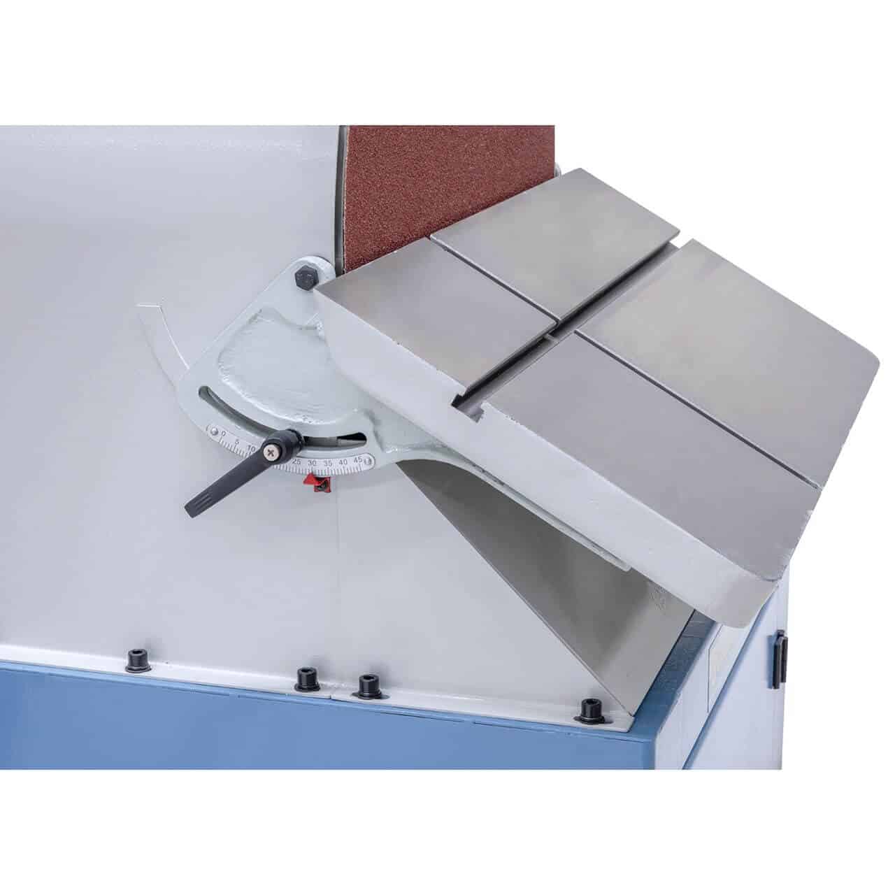 • Tavolo in ghisa inclinabile 0°–45° con cave a T per guida a squadra