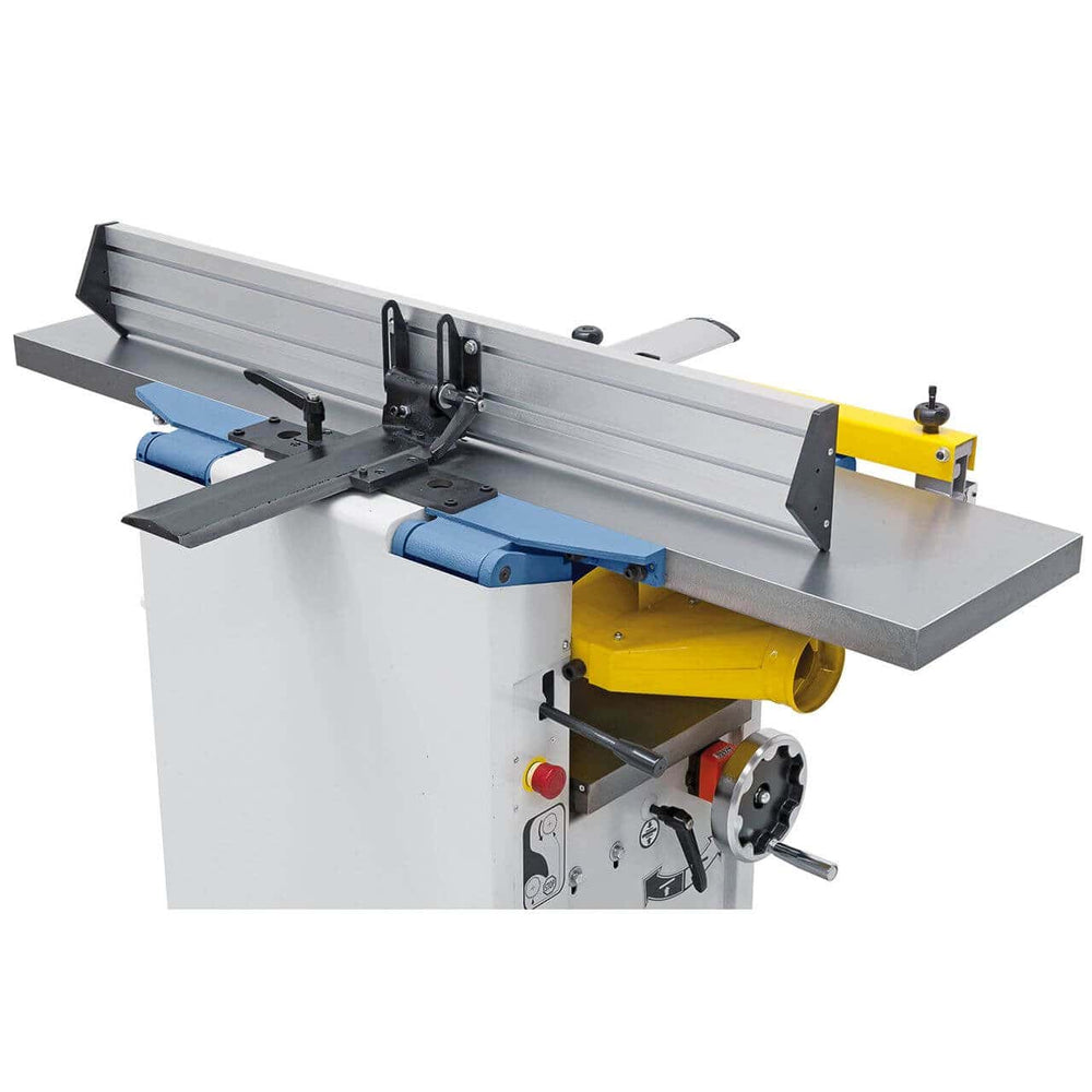 Un ulteriore punto di forza è il display di precisione per il piano a spessore con scala di 1/10 mm, che permette regolazioni accurate e rapide. La battuta di allineamento con guida prismatica inclinabile fino a 45° offre flessibilità per tagli complessi e lavorazioni professionali.