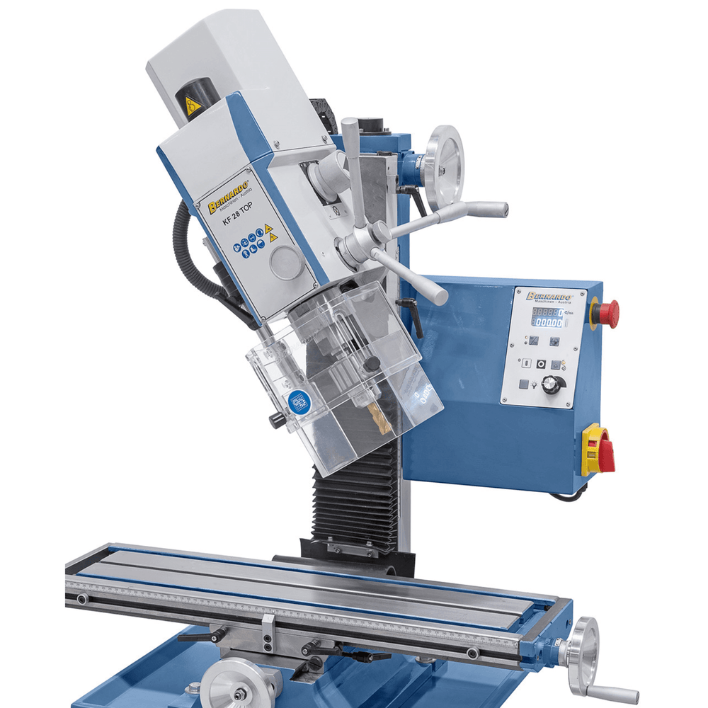 Con digitalizzatore di velocità e corsa mandrino, protezione regolabile, filtro EMC e luce LED inclusi, la KF 28 Top rappresenta una soluzione compatta ed efficiente per officine e laboratori.