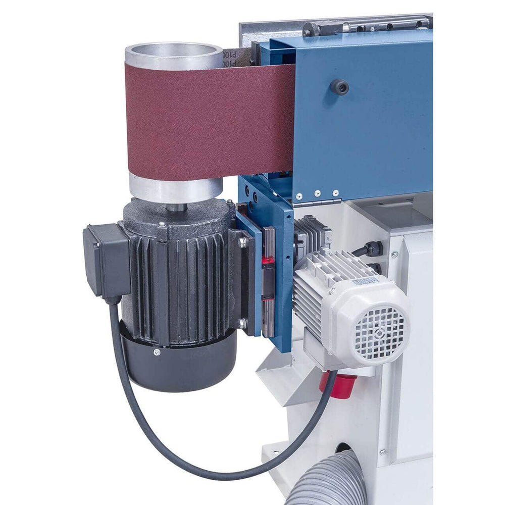 Motore principale 3,0 kW (S1) / 4,5 kW (S6). In dotazione: nastro 3000×150 grana 100, oscillazione nastro, dispositivo impiallacciatura, tavolo di supporto, grafite, guida a squadra, tampone e tubo.