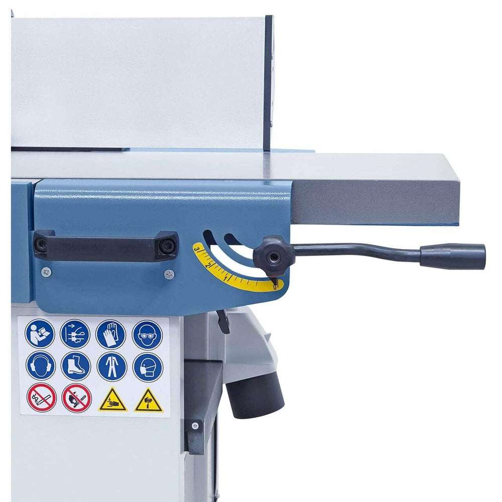 La pialla a filo e spessore Bernardo AD 260 è una macchina combinata di alta precisione, perfetta per falegnami, artigiani e laboratori professionali che cercano prestazioni elevate e un design compatto. I tavoli in ghisa indeformabile assicurano stabilità e risultati impeccabili, mentre il blocco pialla a 3 coltelli HSS garantisce una finitura liscia e uniforme. Grazie al ribaltamento simultaneo dei tavoli e alla cappa di aspirazione integrata Ø 100 mm, il passaggio tra le funzioni di piallatura a filo e a spessore è rapido e pratico. Il piano a spessore con colonna centrale permette regolazioni precise, mentre la recinzione in alluminio anodizzato inclinabile da 90° a 45° amplia le possibilità di lavorazione. Con una potenza di 2,0 kW (2,7 HP) e numerosi sistemi di sicurezza CE, la AD 260 combina potenza, accuratezza e affidabilità in una struttura solida e compatta.