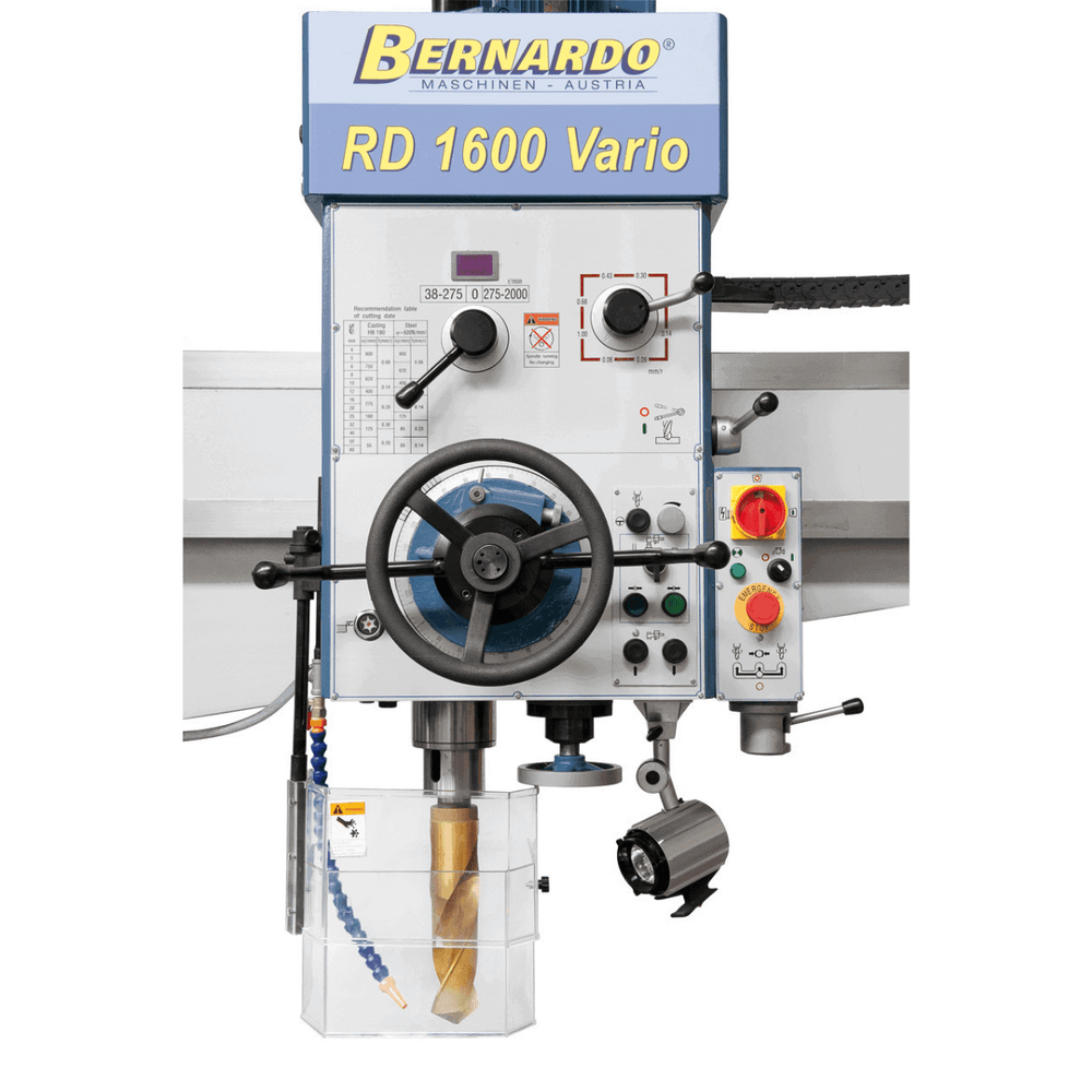Il trapano radiale Bernardo RD 1600 x 60 Vario ĆØ progettato per lavorazioni professionali di foratura, lamatura, alesatura e filettatura fino a M45. Grazie allāinverter di frequenza e al controllo digitale, offre velocitĆ variabile continua (38ā2000 rpm) con lettura immediata su display.