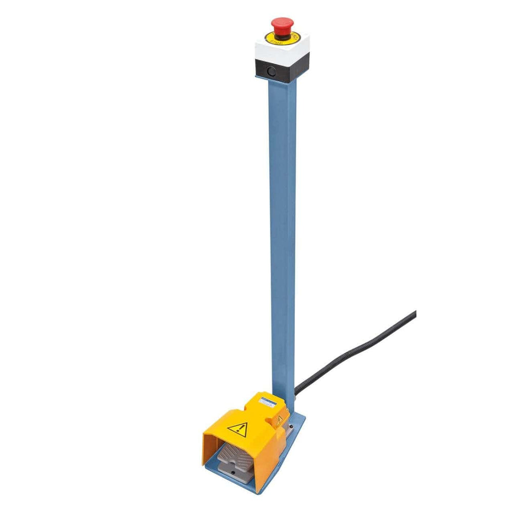 • Dotata di protezioni di sicurezza e pedale con arresto di emergenza