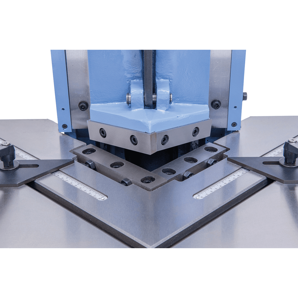 La Bernardo Scantonatrice pneumatica AK 130 PT è una macchina compatta e potente, ideale per scantonature precise su lamiere di acciaio e altri materiali. Con una capacità di taglio fino a 3 mm (400 N/mm²), garantisce risultati puliti e rapidi. La lunghezza massima di taglio a 90° è di 130 x 130 mm, con angolo fisso a 90°. La pressione di taglio raggiunge le 2 tonnellate, con una produttività di 50 colpi/minuto, rendendola adatta a lavorazioni veloci e ripetitive. Dotata di tavola da 600 x 460 mm e struttura robusta da 200 kg, offre stabilità operativa. L’azionamento tramite pedale pneumatico consente di mantenere le mani libere per il posizionamento del pezzo, aumentando sicurezza ed efficienza. Inclusi di serie coltelli di taglio, guide orientabili, protezione in plexiglass e supporto. Una soluzione pratica per officine, scuole e laboratori di carpenteria leggera.
