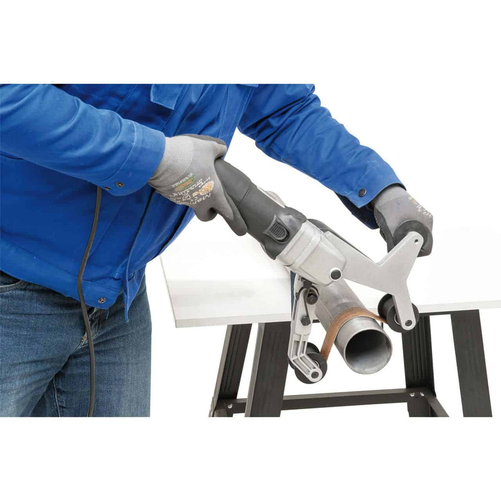 La Smerigliatrice di tubi Bernardo TBS 760 è uno strumento compatto e versatile, ideale per la smerigliatura, la satinatura e la lucidatura di tubi e corrimano, anche già montati a parete. Grazie al braccio flessibile, il nastro abrasivo avvolge il tubo fino a 270°, permettendo una lavorazione uniforme e continua a 360°. L’impugnatura regolabile a 180° riduce gli ingombri e facilita l’uso in spazi ristretti. Il potente motore da 800 W, con avviamento morbido e protezione da sovraccarico, assicura prestazioni affidabili e costanti. L’elettronica integrata mantiene stabile la velocità del nastro (2,4 – 9,1 m/sec), anche sotto sforzo, garantendo superfici perfette senza scolorimenti, in particolare su acciaio inox. Leggera e maneggevole (3,9 kg), con cambio nastro rapido e senza utensili, la TBS 760 è la soluzione ideale per professionisti che richiedono precisione e praticità nelle lavorazioni su tubi.