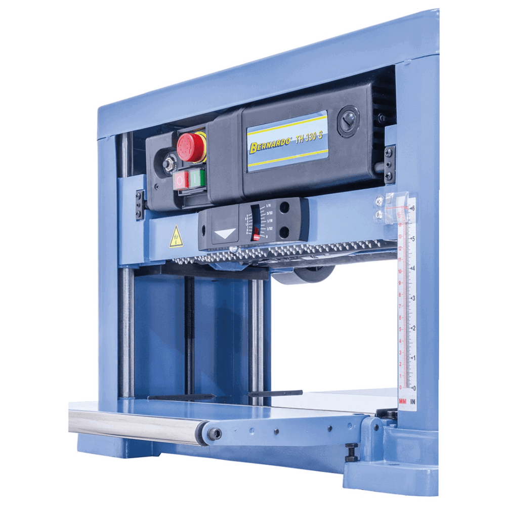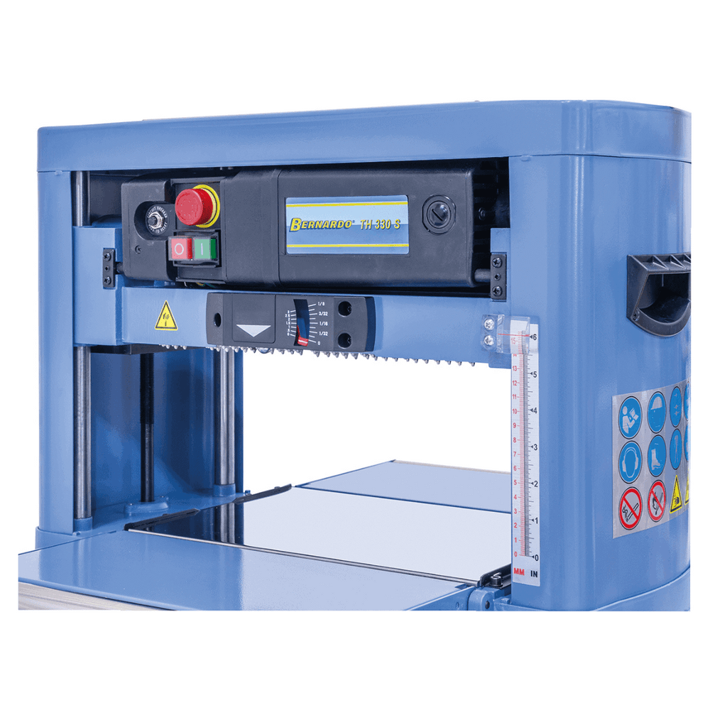La pialla a spessore Bernardo TH 330 S è una macchina compatta, precisa e silenziosa, ideale per falegnami, hobbisti e piccoli laboratori. L’albero a spirale con 30 inserti TCT garantisce superfici lisce e una riduzione della rumorosità fino al 50% rispetto alle lame tradizionali. Gli inserti, reversibili e sostituibili singolarmente, riducono i costi di manutenzione e aumentano la durata operativa. Con larghezza utile di 330 mm, altezza di lavoro fino a 155 mm e profondità di passata massima di 2,8 mm, la TH 330 S offre prestazioni di livello professionale in formato compatto. La tavola a spessore con estensioni e rulli integrati assicura stabilità anche su pezzi lunghi, mentre l’avanzamento automatico a 8 m/min velocizza la lavorazione. Grazie al motore da 1,5 kW (2,0 HP) e all’aspirazione Ø 50 / 100 mm, è una scelta perfetta per lavorazioni efficienti e pulite.