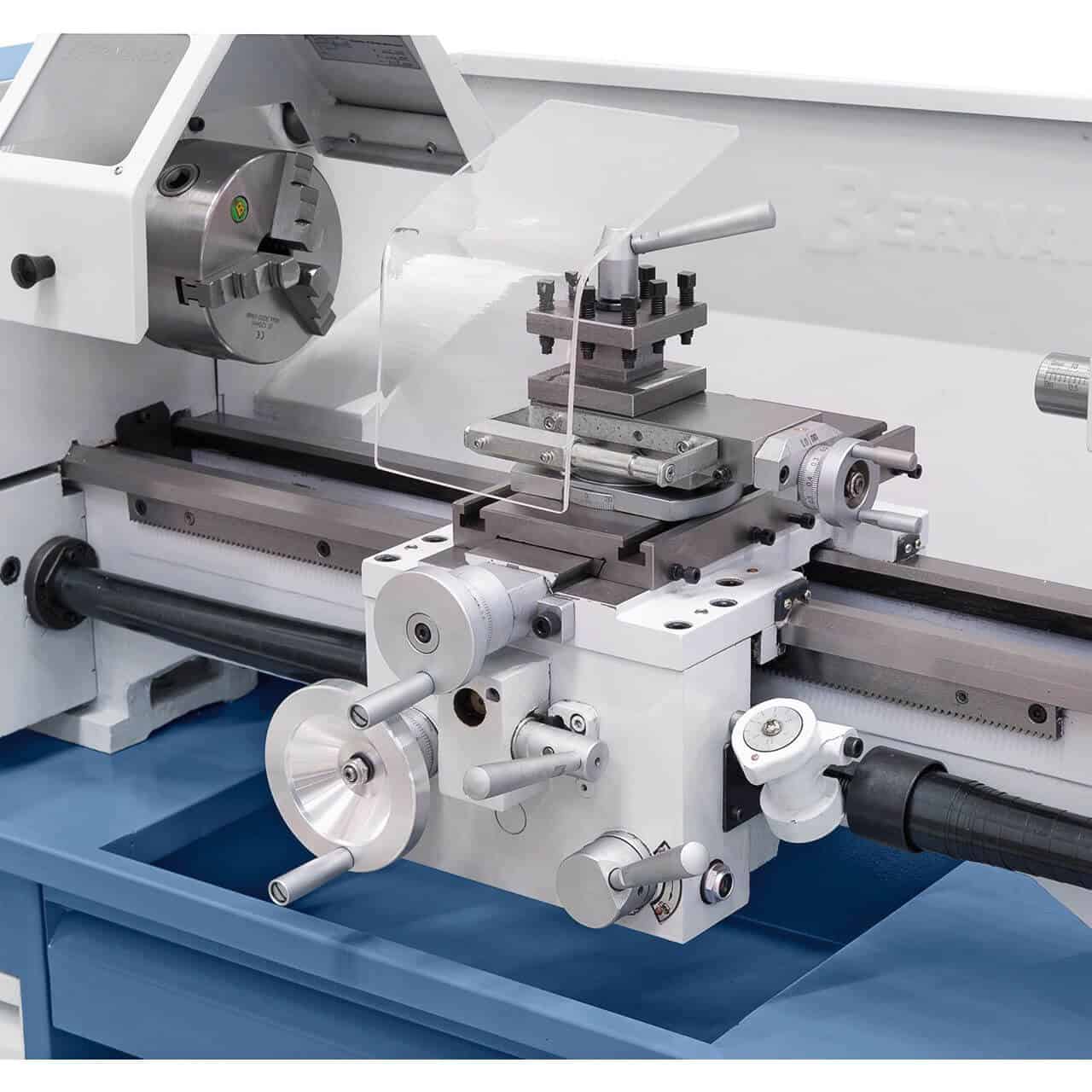 Il tornio Bernardo Profi 550 WQ / 230 V ĆØ un modello professionale compatto, ideale per laboratori, officine e hobbisti avanzati che cercano affidabilitĆ e precisione. Con una distanza tra le punte di 550 mm e unāaltezza di centro di 125 mm, consente la lavorazione di pezzi fino a Ć 250 mm. Il foro mandrino da 26 mm con cono MT4 e la trasmissione a 6 velocitĆ (125 ā 2000 rpm) assicurano versatilitĆ e stabilitĆ anche nelle lavorazioni più impegnative. Dotato di mandrino autocentrante Ć 125 mm, torretta portautensili a 4 posizioni e protezioni di sicurezza, unisce robustezza e praticitĆ . Con un peso di 120 kg e struttura rigida, garantisce lunga durata e ridotte vibrazioni. Una soluzione completa e compatta per chi desidera un tornio affidabile e performante.