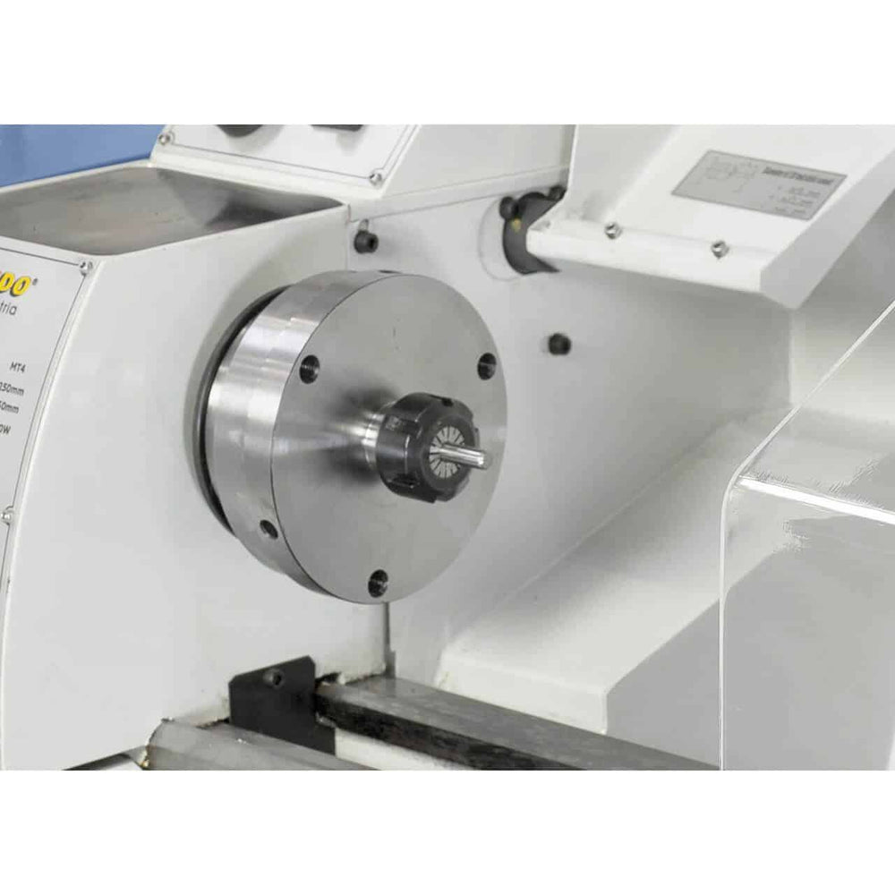 Il tornio Bernardo Profi 550 WQV / 230 V è un modello compatto ma potente, ideale per hobbisti avanzati, laboratori e piccole officine. Con una distanza tra le punte di 550 mm e un’altezza di centro di 125 mm, consente la lavorazione di pezzi fino a Ø 250 mm. Il foro mandrino da 26 mm (cono MT4) e la regolazione continua della velocità (50 – 1000 / 100 – 2000 rpm) offrono versatilità e precisione su diversi materiali. Equipaggiato con mandrino autocentrante Ø 125 mm, torretta portautensili a 4 posizioni e indicazione digitale della velocità, unisce praticità e robustezza. Con un peso di 120 kg e struttura rigida, garantisce stabilità e affidabilità durante le lavorazioni. È la soluzione perfetta per chi desidera un tornio da banco professionale, affidabile e versatile.
