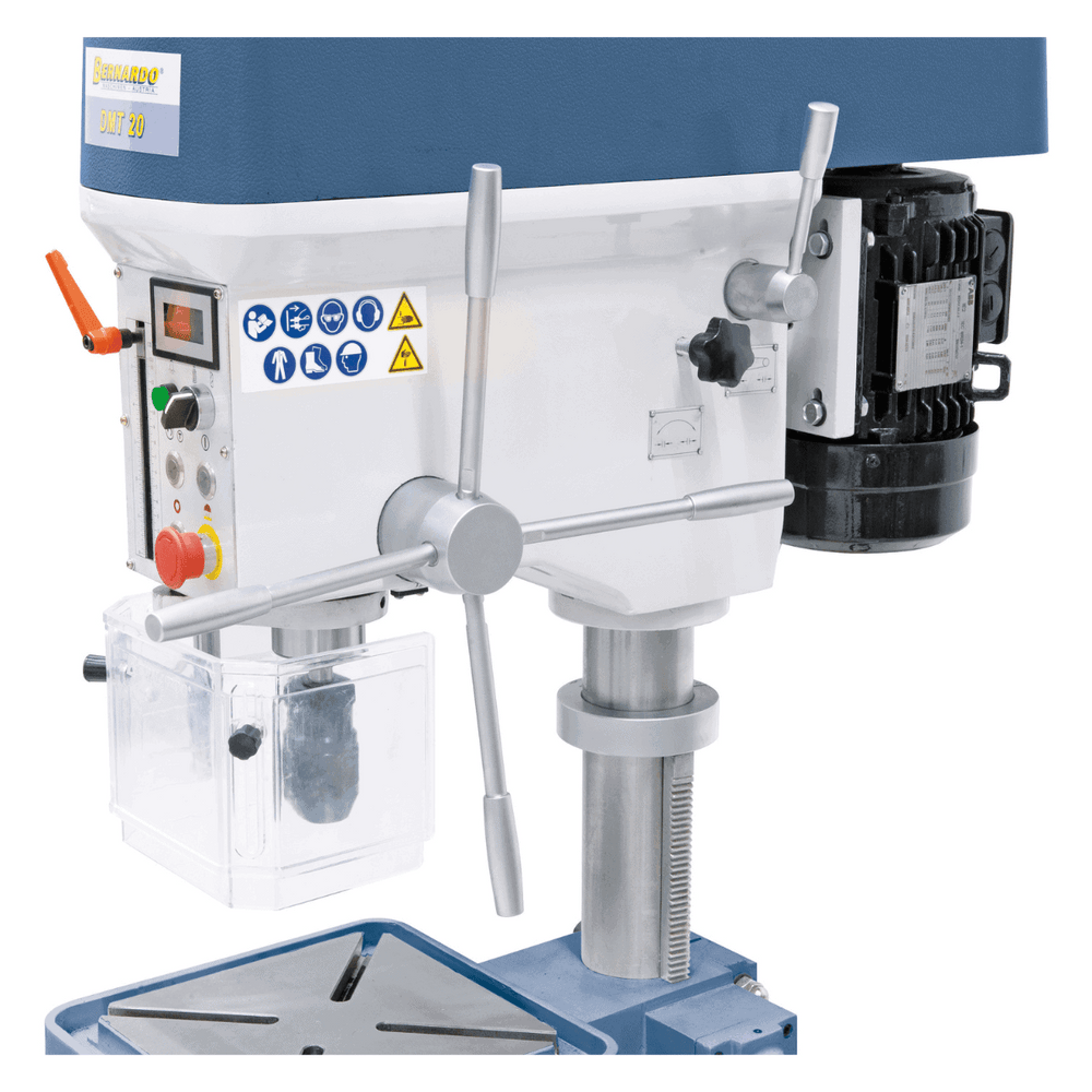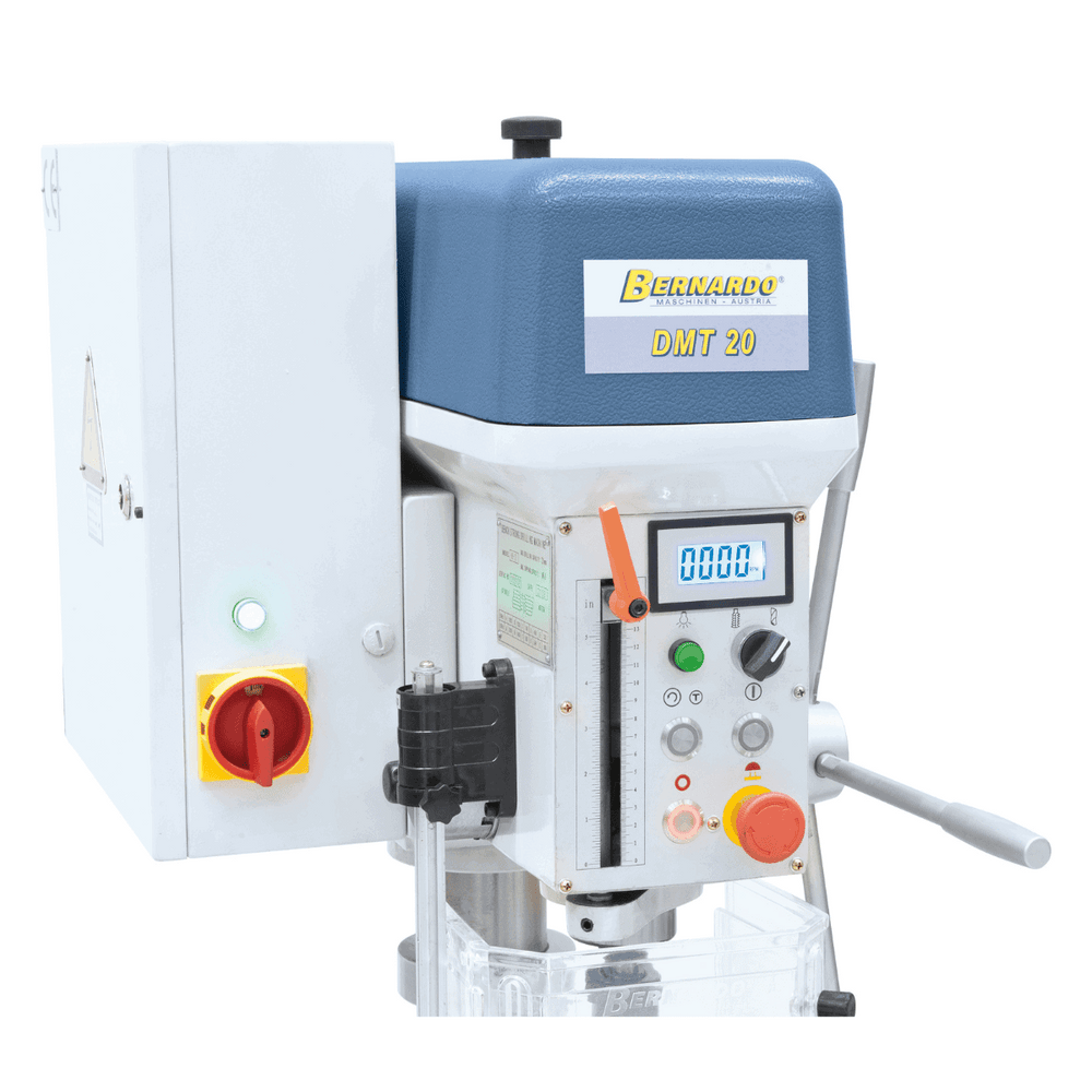 Il trapano da banco Bernardo DMT 20 è una macchina solida e potente, progettata per soddisfare le esigenze di officine professionali e lavorazioni impegnative. Dotato di protezione regolabile conforme agli standard CE, tavola trattata e regolabile in altezza tramite cremagliera, garantisce sicurezza e versatilità d’uso. Grazie alla corsa mandrino di 135 mm e all’elevata concentricità ≤0,02 mm, offre precisione anche nelle lavorazioni più complesse. Il motore da 1,1 kW assicura potenza continua, mentre la funzione di inversione automatica consente di effettuare operazioni di filettatura fino a M16. Con display digitale delle velocità, mandrino autoserrante di qualità e luce LED integrata, il DMT 20 unisce tecnologia moderna e robustezza, risultando un alleato indispensabile per applicazioni di alta precisione.