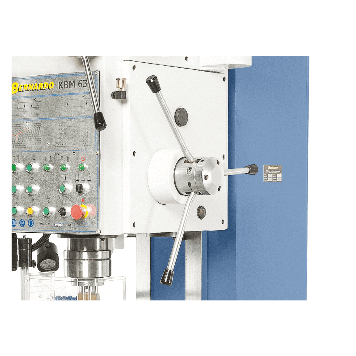 Il Bernardo Trapano a colonna fissa KBM 63 è una macchina industriale progettata per la meccanica pesante e le applicazioni professionali che richiedono precisione, stabilità e potenza elevata. Con capacità di foratura fino a 63 mm in acciaio e filettatura fino a M48, si distingue per la sua robustezza e affidabilità. Il motore da 5,5 kW garantisce una coppia di 800 Nm e una forza di avanzamento fino a 30.000 N. Grazie all’avanzamento automatico del mandrino, al dispositivo di filettatura con inversione automatica e alla guida a coda di rondine regolabile, le lavorazioni risultano fluide e precise. La tavola in ghisa con cave a T da 22 mm e il sollevamento di 300 mm assicurano massima versatilità. Dotato di dispositivo refrigerante, lampada LED e protezioni integrate, il KBM 63 è una scelta affidabile per produzioni industriali di alto livello.