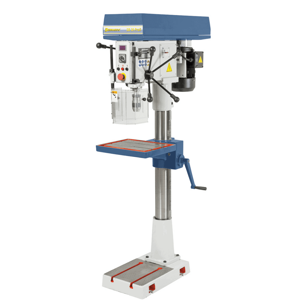 Il trapano a colonna Bernardo SB 30 Profi è progettato per soddisfare le esigenze di officine professionali e lavorazioni pesanti. La robusta struttura in ghisa grigia assicura stabilità e lunga durata, mentre la regolazione continua della velocità, leggibile sul display digitale, consente un controllo preciso in ogni applicazione. Grazie alla rotazione destra/sinistra del mandrino, è ideale anche per operazioni di filettatura. La tavola di grandi dimensioni con regolazione in altezza a cremagliera garantisce massima versatilità, mentre la base con cave a T permette il fissaggio di pezzi voluminosi. Il potente motore a due stadi assicura prestazioni elevate con velocità comprese tra 105 e 1725 giri/min. Dotato di mandrino di qualità, luce LED integrata e protezione regolabile, lo SB 30 Profi combina potenza, precisione e sicurezza in un’unica macchina.