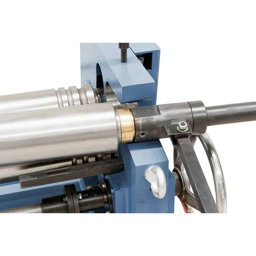 La calandra motorizzata Bernardo MRC 1300 – 2,5 MD è una macchina professionale robusta, progettata per la laminazione precisa di acciaio, inox, lamiera zincata e alluminio. Con rulli da 1300 mm e capacità fino a 2,5 mm di spessore (400 N/mm²), offre prestazioni elevate in officine e carpenterie. La struttura in lamiera d’acciaio estremamente solida garantisce precisione anche sotto sforzo, mentre i rulli in acciaio di alta qualità da Ø 90 mm assicurano lunga durata. Il rullo superiore scorrevole permette la facile rimozione del pezzo finito, mentre rullo inferiore e posteriore regolabili consentono la preflessione fino a 2 mm. Il rullo posteriore è azionato da un motore dedicato con indicatore digitale per regolazioni rapide e accurate. La sicurezza è garantita dal pedale mobile con arresto di emergenza e dal dispositivo a corda. Inclusi il dispositivo di calandratura conica e le scanalature longitudinali dei rulli per massima versatilità.