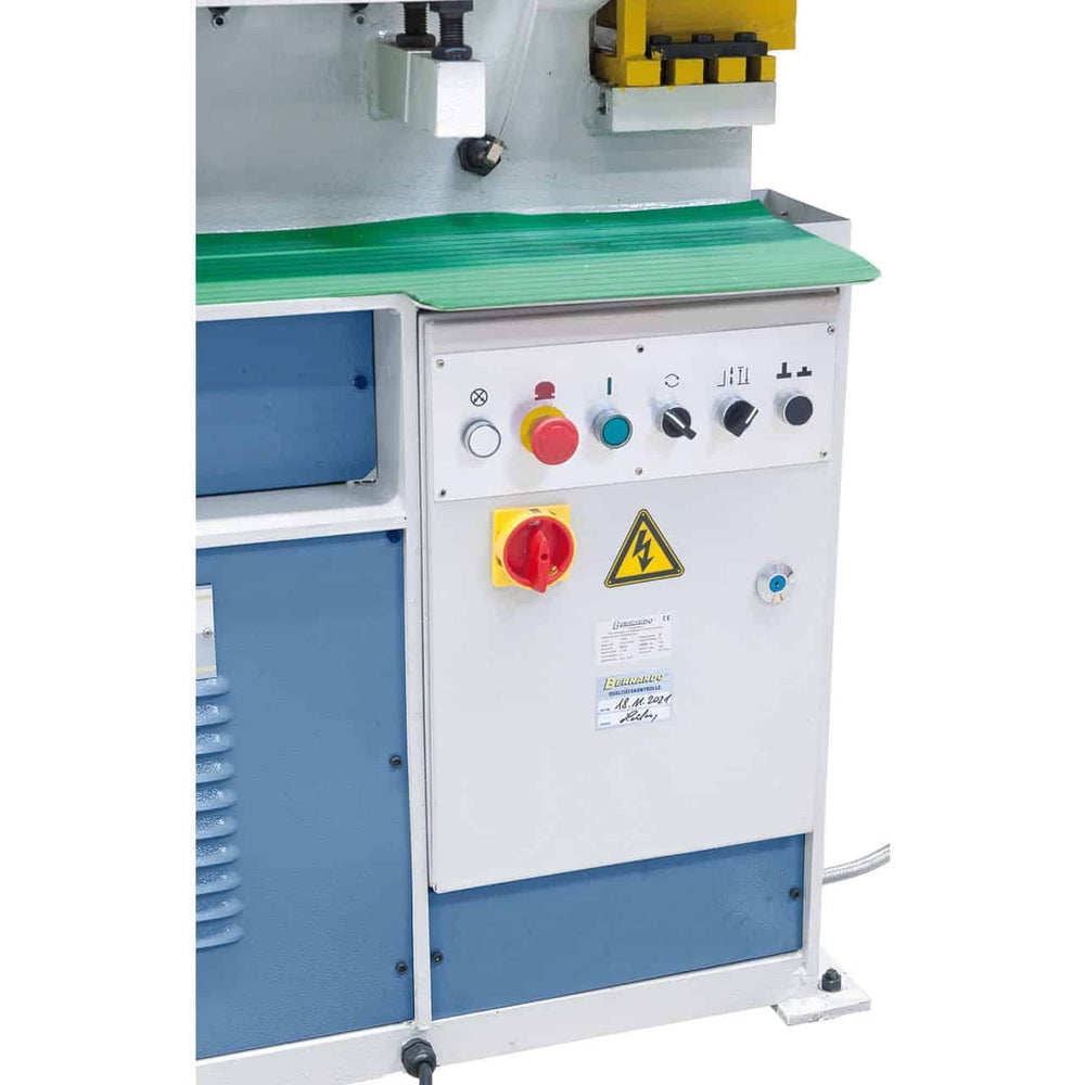 La cesoia idraulica Bernardo HPS 55 è una macchina versatile e potente, pensata per la lavorazione professionale di acciai e profilati. Con una forza di punzonatura di 55 tonnellate, consente di forare fino a 24 mm di diametro su spessori da 15 mm, estendibili fino a 40 mm con accessori opzionali. Dotata di più stazioni operative, permette di lavorare piatti fino a 330 mm, profili angolari, barre tonde e quadre, oltre a profili a T, U e I. La presenza di una stazione di intaglio dedicata consente intagli rettangolari e triangolari con spessore fino a 15 mm, ampliando le possibilità d’uso. Equipaggiata con un motore da 4 kW e struttura robusta da 1400 kg, la HPS 55 garantisce precisione, potenza e affidabilità per carpenterie, officine meccaniche e aziende che richiedono flessibilità e produttività elevate.