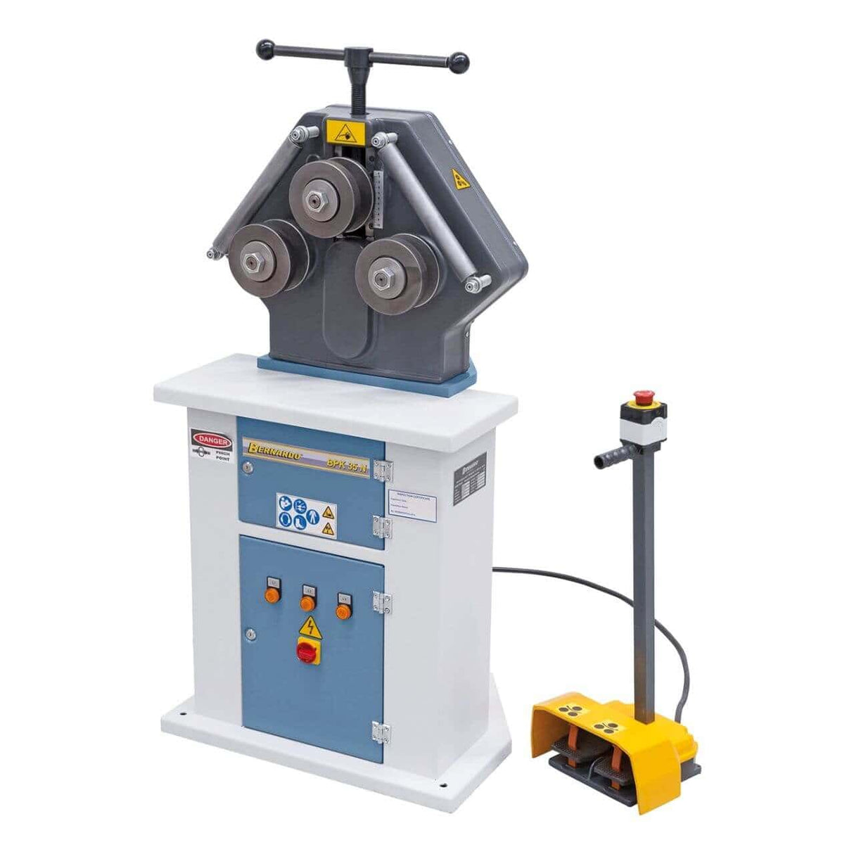 La curvatubi elettrica Bernardo BPK 35 N è una macchina compatta e robusta, ideale per officine e reparti di carpenteria leggera che necessitano di piegature precise su tubi e profili metallici. Grazie agli alberi da 30 mm e ai rulli da 138/137 mm, garantisce stabilità e precisione durante la lavorazione. La velocità di piegatura di 4,5 m/min, unita al motore elettrico da 0,75 kW, assicura prestazioni costanti in un formato compatto e facilmente collocabile. La macchina è fornita di serie con un set di rulli standard, rulli raddrizzatori laterali e pedale di comando con arresto di emergenza per la massima sicurezza. Con un peso di circa 185 kg e dimensioni contenute, rappresenta la soluzione perfetta per chi cerca una curvatubi efficiente, affidabile e sicura in spazi ridotti.