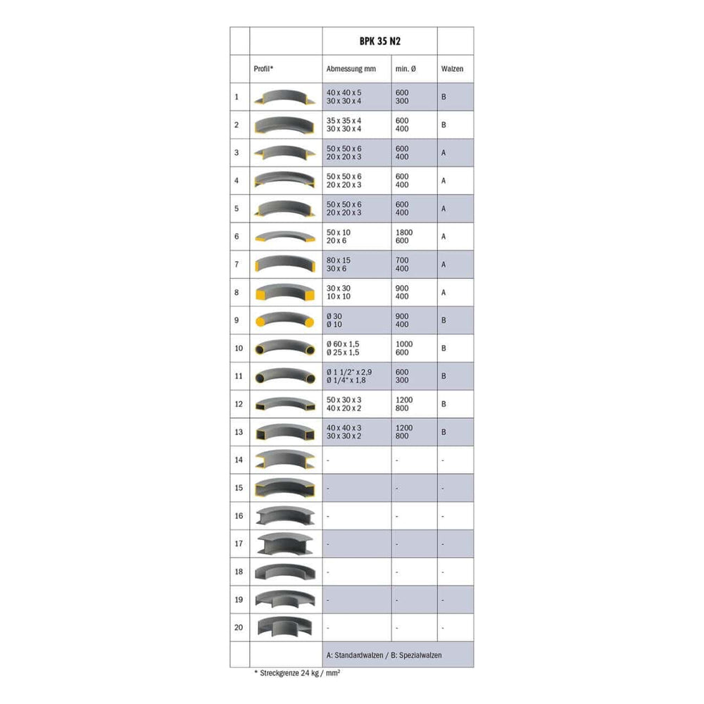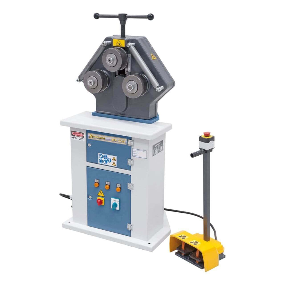 La curvatubi elettrica Bernardo BPK 35 N2 è una macchina compatta e versatile, progettata per piegare tubi e profili metallici con precisione. Rispetto al modello BPK 35 N, questa versione dispone di un motore a doppia velocità (0,6 / 0,9 kW) che permette di selezionare tra 4,5 e 9 m/min, adattandosi sia a lavorazioni di precisione sia a produzioni più rapide. Gli alberi da 30 mm e i rulli Ø 138/137 mm garantiscono stabilità e lunga durata, mentre la robusta struttura assicura lavorazioni senza vibrazioni. È fornita di serie con un set di rulli standard, rulli raddrizzatori laterali e un pedale di comando con arresto di emergenza, che offre massima sicurezza all’operatore. Con un peso contenuto di circa 185 kg e dimensioni compatte, la BPK 35 N2 rappresenta la scelta ideale per officine e laboratori che cercano una curvatubi elettrica efficiente, flessibile e sicura.