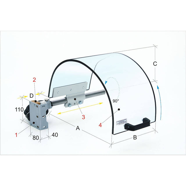 La forma dello scudo lo rende ideale per essere posizionato vicino alla testa della macchina. È dotato di uno scudo monolitico realizzato in materiale plastico e disponibile in diverse dimensioni.