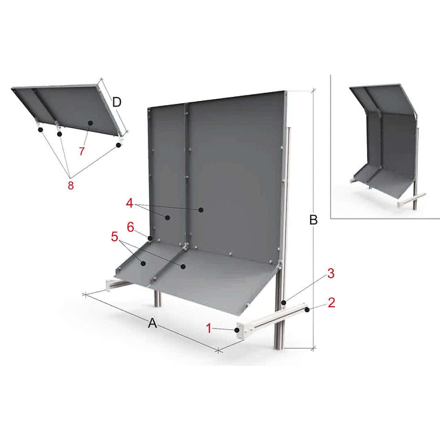 E' agganciabile nella parte inferiore della base e da terra tramite un sistema di bracci regolabili in profilo strutturale di alluminio. La lamiera protettiva è divisa in due parti separate per ridurre l'ingombro durante il trasporto. Disponibile (a richiesta) art. PTO 31/…/T con tetto inclinato, per una maggiore protezione superiore, se richiesta. La struttura è compatibile con il riparo di protezione PTO12/…