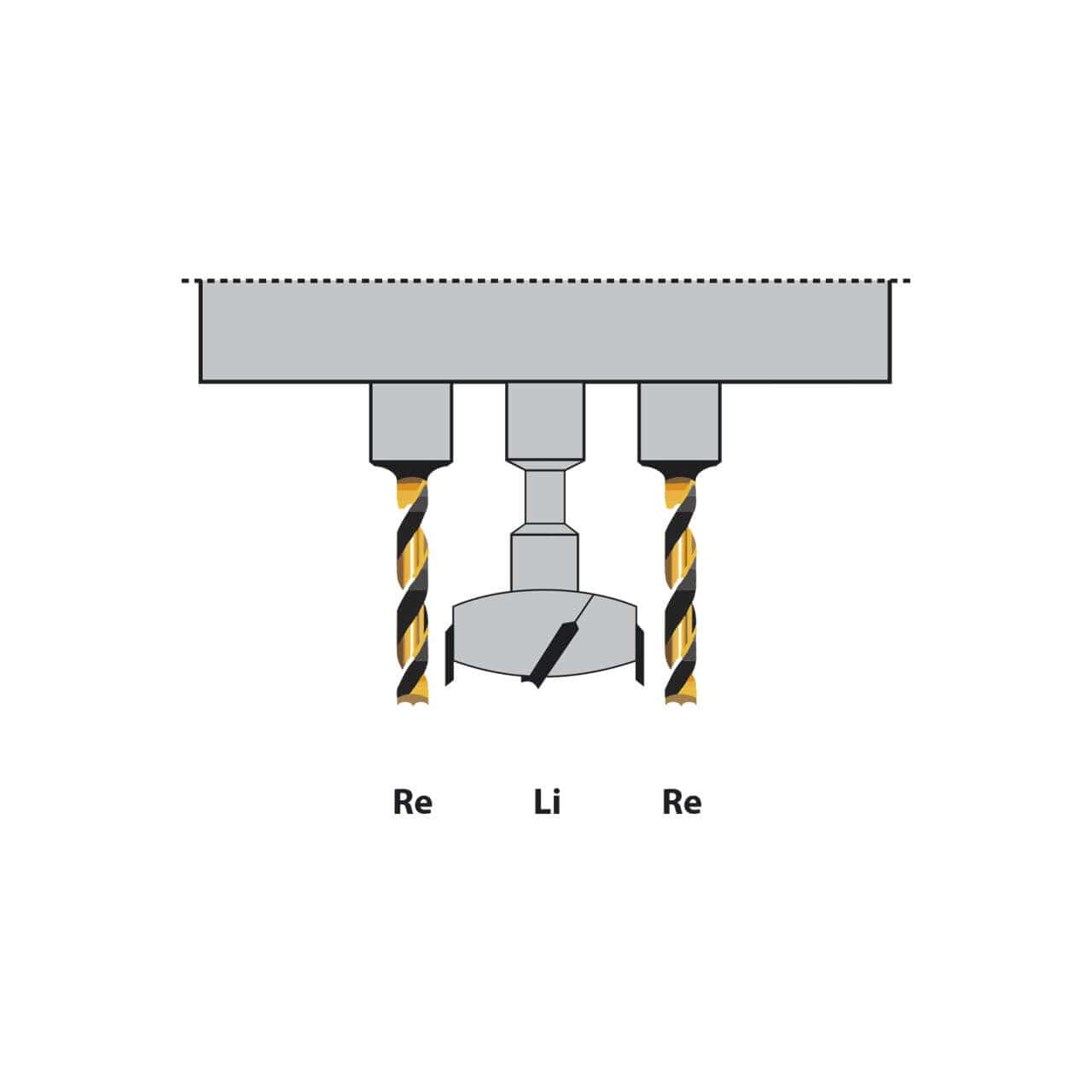 ⢠Unità di foratura a 3 mandrini