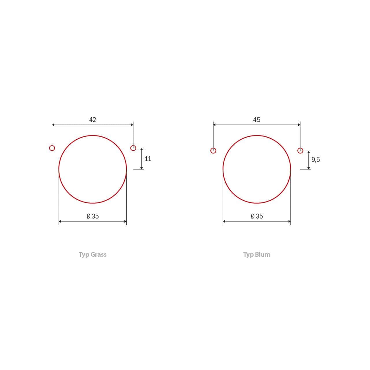 ⢠Punta per cerniere à 35 mm sinistra