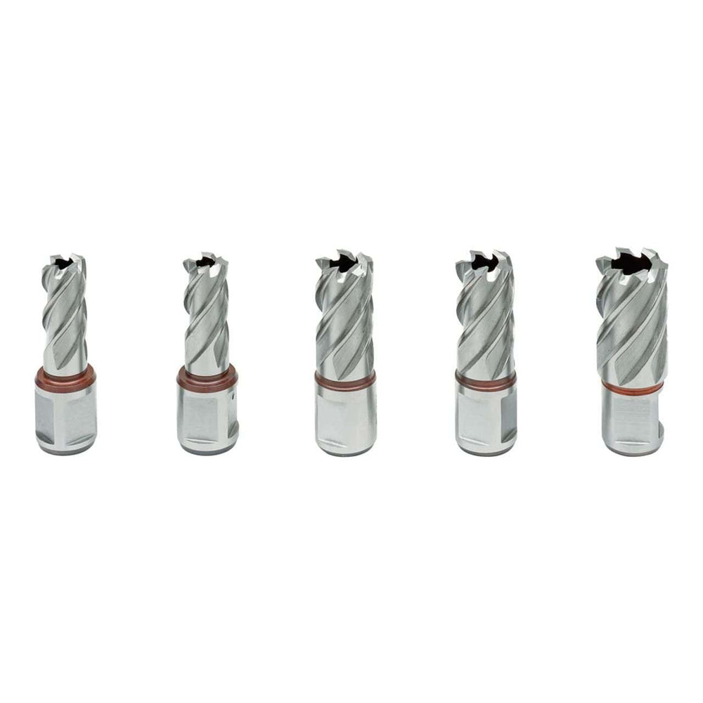 Le frese a corona standard HSS KBK e KBL sono fabbricate in acciaio super-rapido e concepite per l‘utilizzo professionale. Un vantaggio della fresa a corona rispetto alle punte elicoidali è che non viene lavorata l‘intera superficie di foratura, ma solo un anello sottile. In tal modo, lo sforzo è molto più basso.