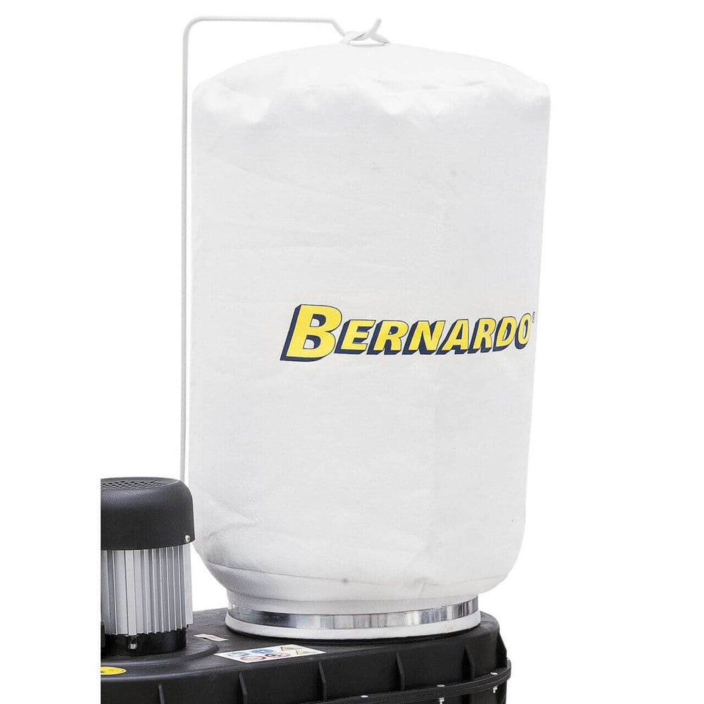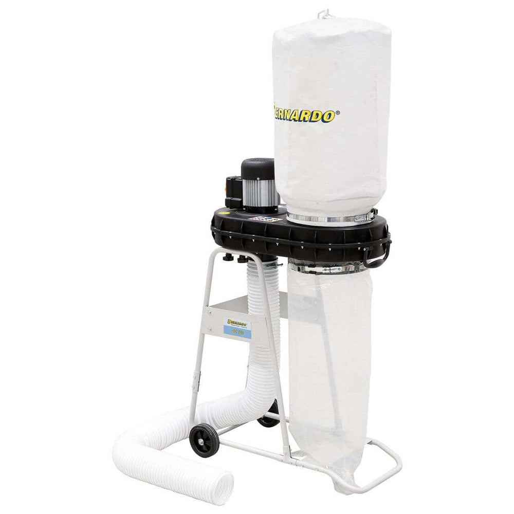 l Bernardo DC 160 è un impianto di aspirazione compatto e pratico, perfetto per hobbisti e piccoli laboratori di falegnameria. Con una portata d’aria di 850 m³/h e una depressione massima di 700 Pa, garantisce un’aspirazione efficace per macchinari di dimensioni ridotte. Dotato di una sacca trucioli da 40 litri e di una sacca filtro con superficie di 0,8 m², mantiene l’aria pulita e riduce la dispersione di polveri sottili. Il tubo di aspirazione a spirale da 2,0 metri e l’attacco da Ø 100 mm consentono un collegamento rapido e versatile. Il motore da 0,55 kW (0,75 CV) è alimentato a 230 V, silenzioso (80 dB) ed efficiente. Con peso ridotto (17 kg) e dispositivo di traslazione, il DC 160 è facile da spostare e rappresenta la soluzione ideale per chi cerca un aspiratore leggero, affidabile e conveniente.