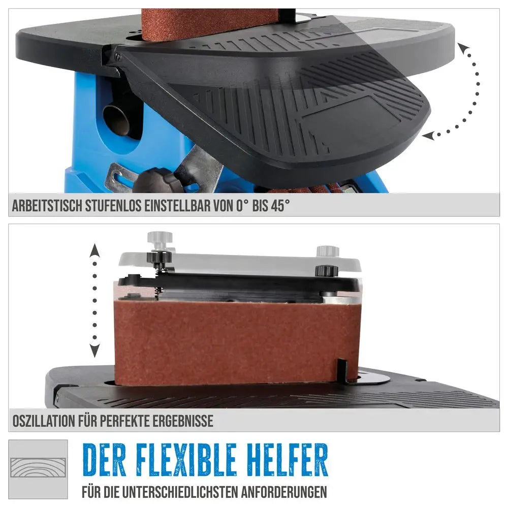 La levigatrice combinata Guede GSBSM 500 è una macchina 2 in 1 che unisce le funzioni di levigatrice a mandrino e levigatrice a nastro in un unico dispositivo compatto e preciso. Grazie al movimento oscillante e al motore da 500 W, offre una levigatura uniforme con una maggiore durata degli abrasivi. Il piano di lavoro inclinabile fino a 45° consente tagli e rifiniture angolari, mentre il cambio rapido senza utensili permette di passare facilmente dal nastro ai rulli di levigatura. Gli accessori, come rulli, manicotti abrasivi e inserti da banco, sono alloggiati direttamente nella struttura per un utilizzo ordinato e immediato. Dotata di attacco aspirazione Ø35/38 mm, mantiene pulita l’area di lavoro. Ideale per falegnamerie, modellismo, restauro e hobbisti che richiedono precisione e versatilità.