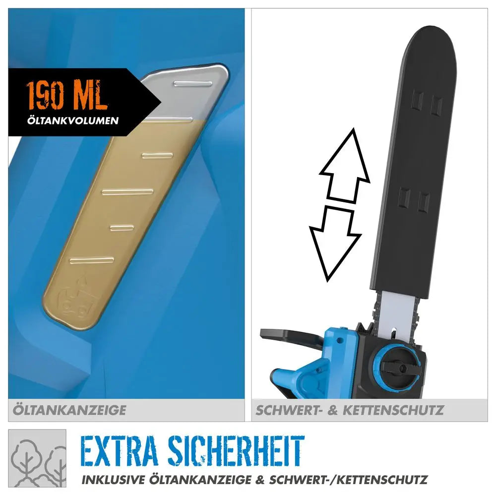 La motosega elettrica Güde KS 405 EC è una soluzione leggera, maneggevole e potente, ideale per la manutenzione del verde, il taglio di legna da ardere e piccoli interventi intorno a casa e in giardino. Equipaggiata con un motore elettrico da 2400 W e una velocità catena di 13 m/s, garantisce prestazioni elevate e un taglio rapido e preciso. Il sistema di tensionamento catena rapido senza attrezzi permette regolazioni immediate, migliorando la produttività e la sicurezza. Include artiglio fermatronchi in metallo, maniglia d’abbattimento, freno catena e indicatore livello olio, assicurando controllo completo durante l’utilizzo. La protezione dal sovraccarico e il dispositivo salva-cavo integrato aumentano la sicurezza operativa. Perfetta per hobbisti e utenti domestici che cercano un’elettrica affidabile, robusta e facile da usare.