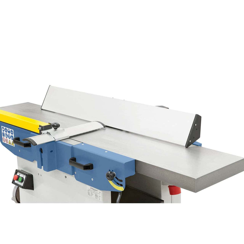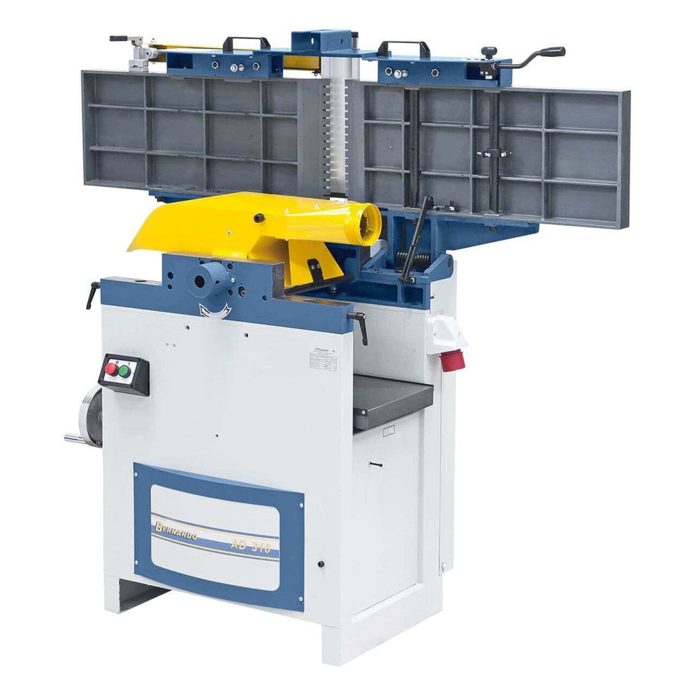 La pialla a filo e spessore Bernardo AD 310 è una macchina professionale progettata per falegnami, artigiani e laboratori del legno che cercano precisione, stabilità e potenza. Con una larghezza di piallatura di 310 mm e tavoli in ghisa indeformabile, offre risultati di alta qualità e lavorazioni uniformi. Il gruppo pialla con 4 coltelli HSS assicura una finitura perfettamente liscia, mentre il piano a spessore con colonna centrale consente regolazioni precise e costanti. La recinzione in alluminio anodizzato inclinabile da 90° a 45° garantisce versatilità nelle lavorazioni angolari. I tavoli ribaltabili riducono l’ingombro, rendendo il passaggio da pialla a filo a pialla a spessore rapido e semplice. Il motore trifase da 3,0 kW (4 HP) fornisce la potenza necessaria per lavori intensivi, con una struttura robusta e sicura conforme agli standard CE.