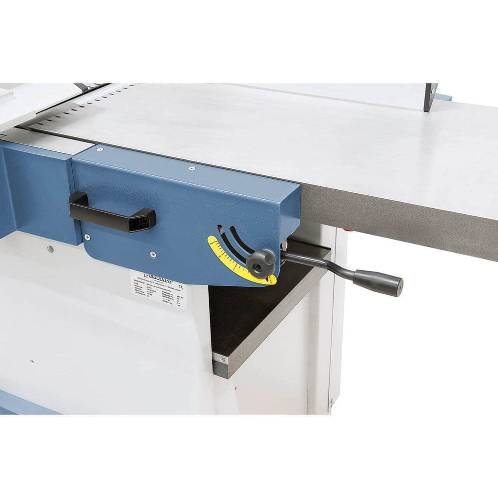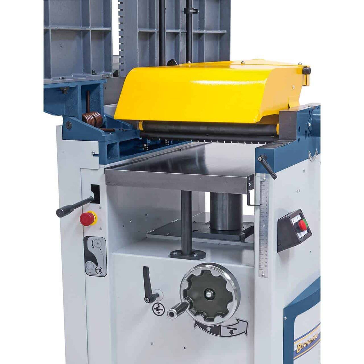 La pialla a filo e spessore Bernardo AD 410 – 400V è una macchina professionale per falegnamerie e laboratori che necessitano di precisione, potenza e robustezza. Con una larghezza di piallatura di 410 mm e un tavolo lungo 1685 mm, assicura superfici planari di alta qualità. L’albero pialla da 95 mm con 4 coltelli HSS lavora a 4300 giri/min, garantendo finiture lisce anche su legno duro. La piallatrice a spessore permette passaggi da 4 a 220 mm con profondità di truciolo fino a 5 mm e avanzamento costante di 6 m/min. Il potente motore trifase da 3,0 kW (4,2 kW S6) assicura prestazioni elevate e continue. Con un peso di 340 kg, la struttura stabile riduce vibrazioni e aumenta la precisione di lavoro. Una soluzione ideale per falegnami esigenti e officine professionali.