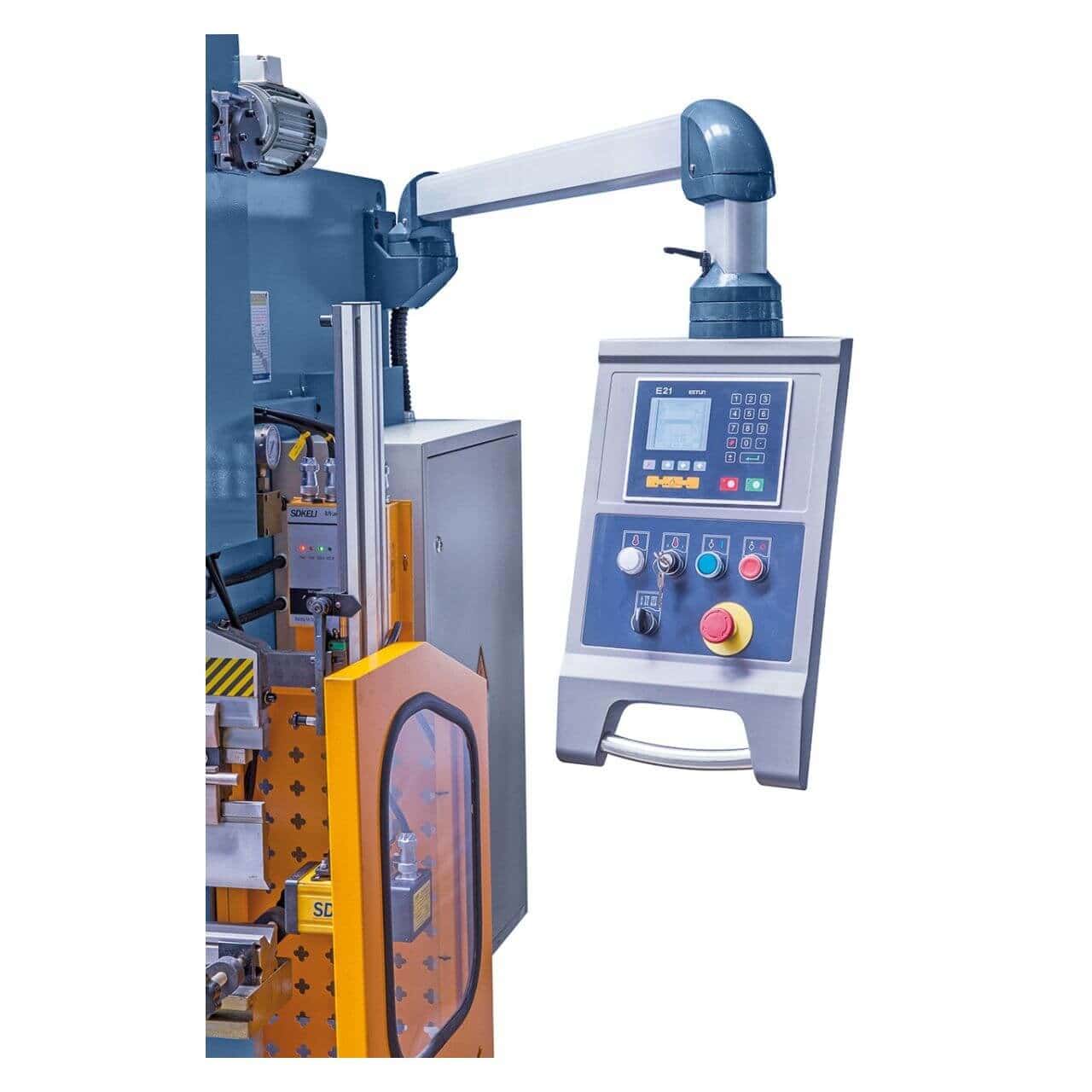 La piegatrice idraulica AKPL 3200 x 100 unisce potenza, precisione e robustezza in una macchina progettata per la lavorazione di lamiere di grandi dimensioni. Con una forza di piegatura da 100 tonnellate e una lunghezza utile di 3200 mm, garantisce risultati uniformi e ripetibili anche su lavorazioni impegnative. Grazie ai cilindri sincronizzati, al riscontro posteriore con vite a ricircolo di sfere e al robusto telaio in acciaio ad alta resistenza, la macchina assicura stabilità e lunga durata. Il controllo numerico NC E21S rende l’utilizzo semplice ed efficace, mentre il sistema di cambio rapido degli utensili riduce notevolmente i tempi di setup.