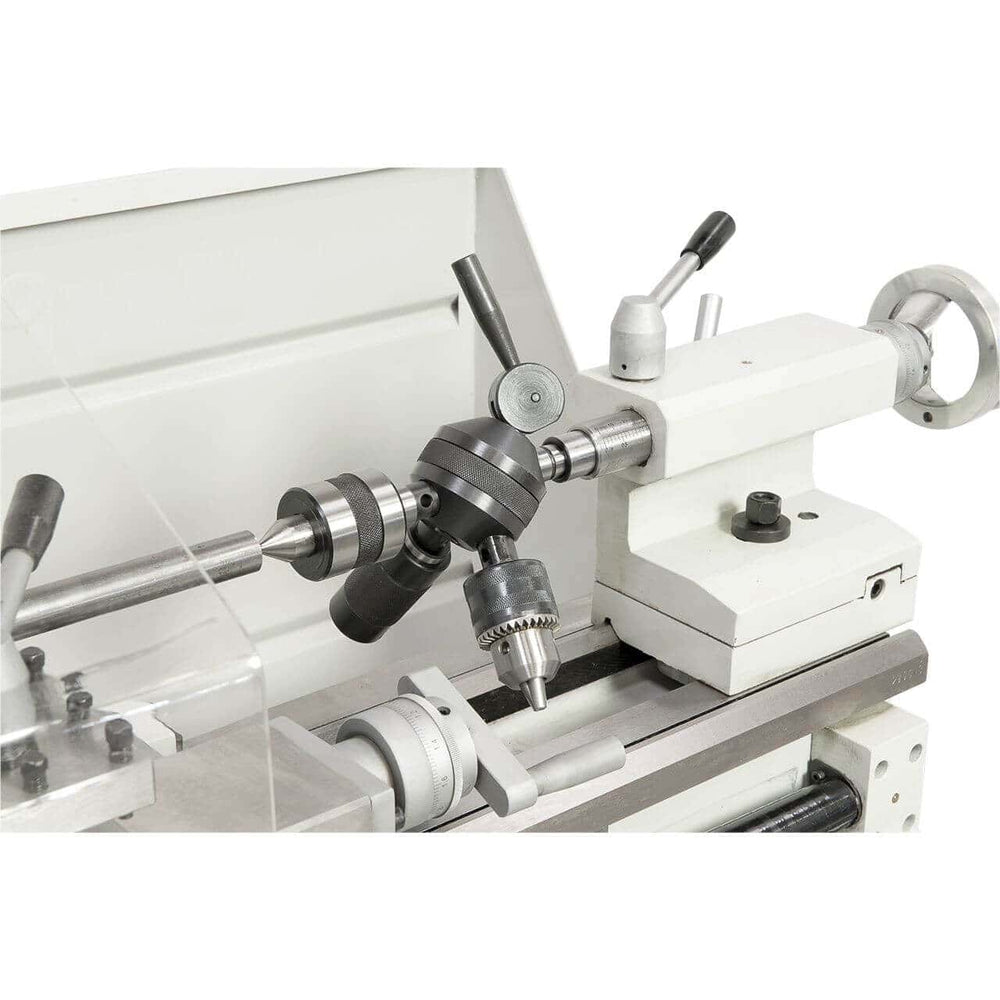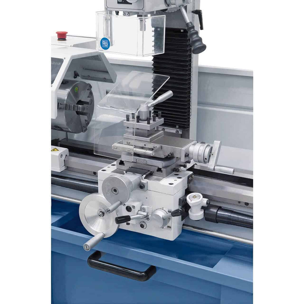 Il centro di lavoro Bernardo Proficenter 700 BQV / 230 V è una macchina combinata tornio-fresatrice progettata per chi necessita di precisione e versatilità in spazi contenuti. Il tornio, con passaggio barra da 38 mm e bancale prismato temprato a induzione, assicura stabilità e affidabilità nella lavorazione di acciaio, metalli non ferrosi e plastica. La velocità è regolabile in continuo (50–1800 giri/min) e leggibile sul display digitale. La fresatrice integrata, con testa inclinabile ±90° e velocità fino a 2250 rpm, offre capacità di foratura fino a 20 mm e fresatura frontale fino a 63 mm. Grazie agli avanzamenti automatici e alle filettature metriche e in pollici, rappresenta una soluzione completa per officine, scuole tecniche e hobbisti evoluti. Fornito di serie con mandrino autocentrante, torretta portautensili e numerosi accessori.