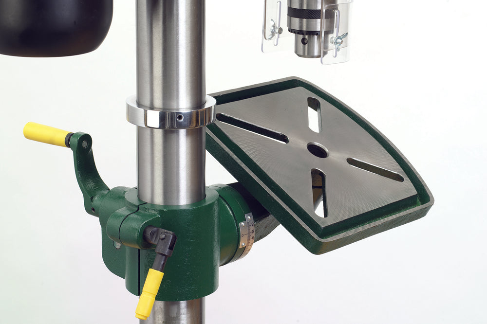Grazie alla colonna da 50" e alla regolazione del tavolo a cremagliera, permette di lavorare pezzi voluminosi con facilità, mentre la testa in ghisa assicura rigidità e abbattimento delle vibrazioni.