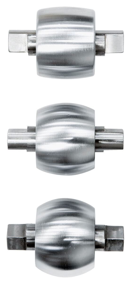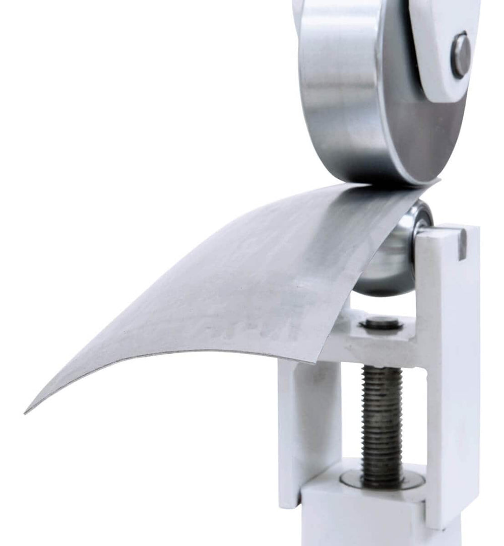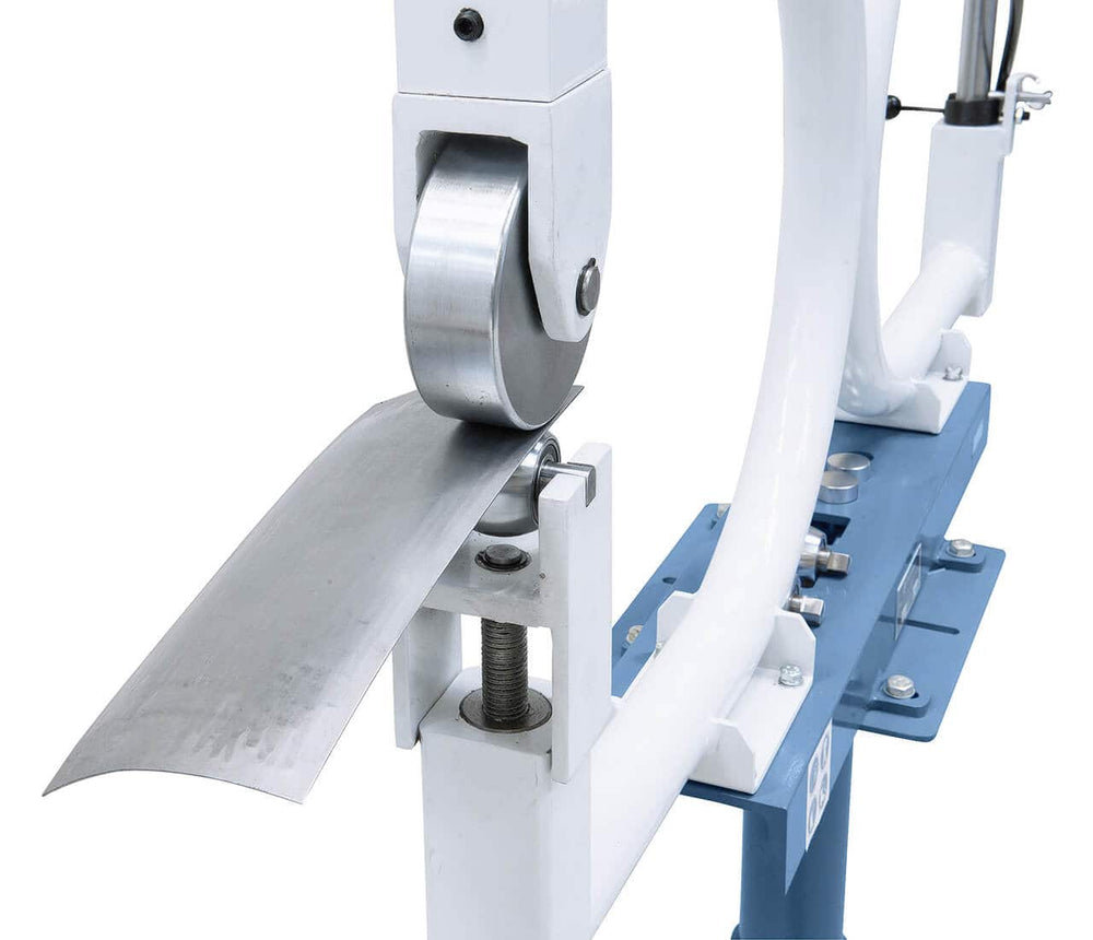 La macchina è dotata di martello di finitura rimovibile e pressione regolabile tramite volantino, consentendo una grande varietà di raggi di curvatura. Grazie al sistema di sgancio rapido della ruota inferiore, il pezzo lavorato può essere rimosso facilmente. In dotazione sono inclusi rulli, matrici e martello lucidante, con pratico supporto integrato sul corpo macchina.