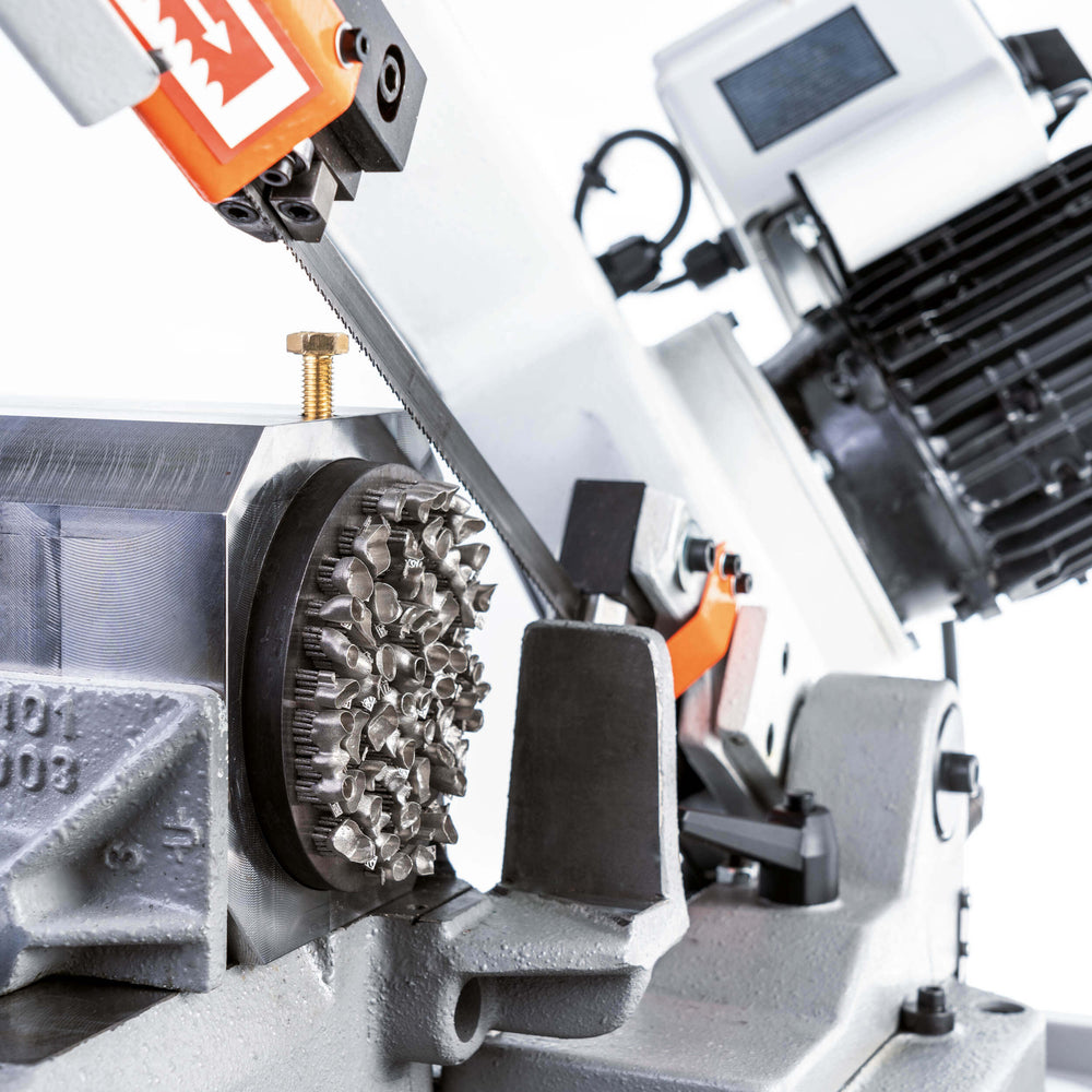 • Sega a nastro portatile per metalli con due velocità di taglio (35–75 m/min)