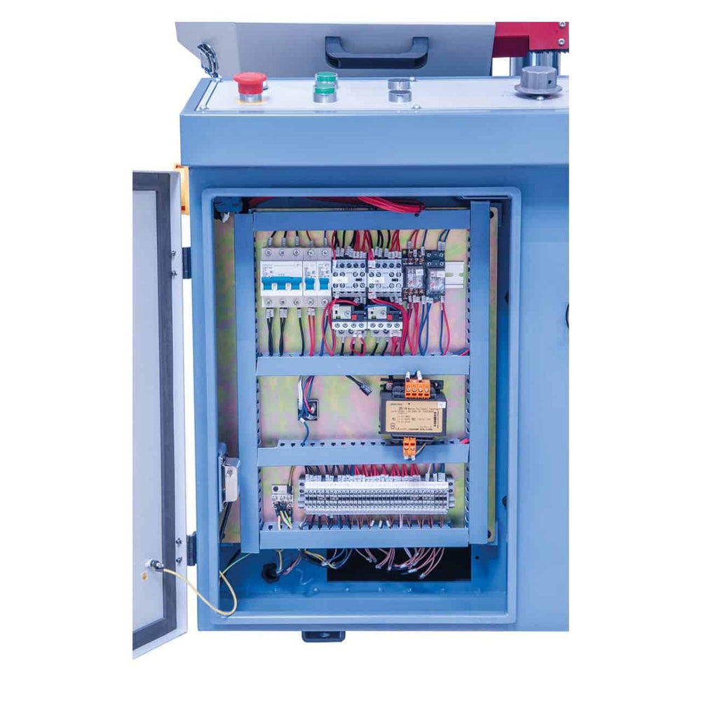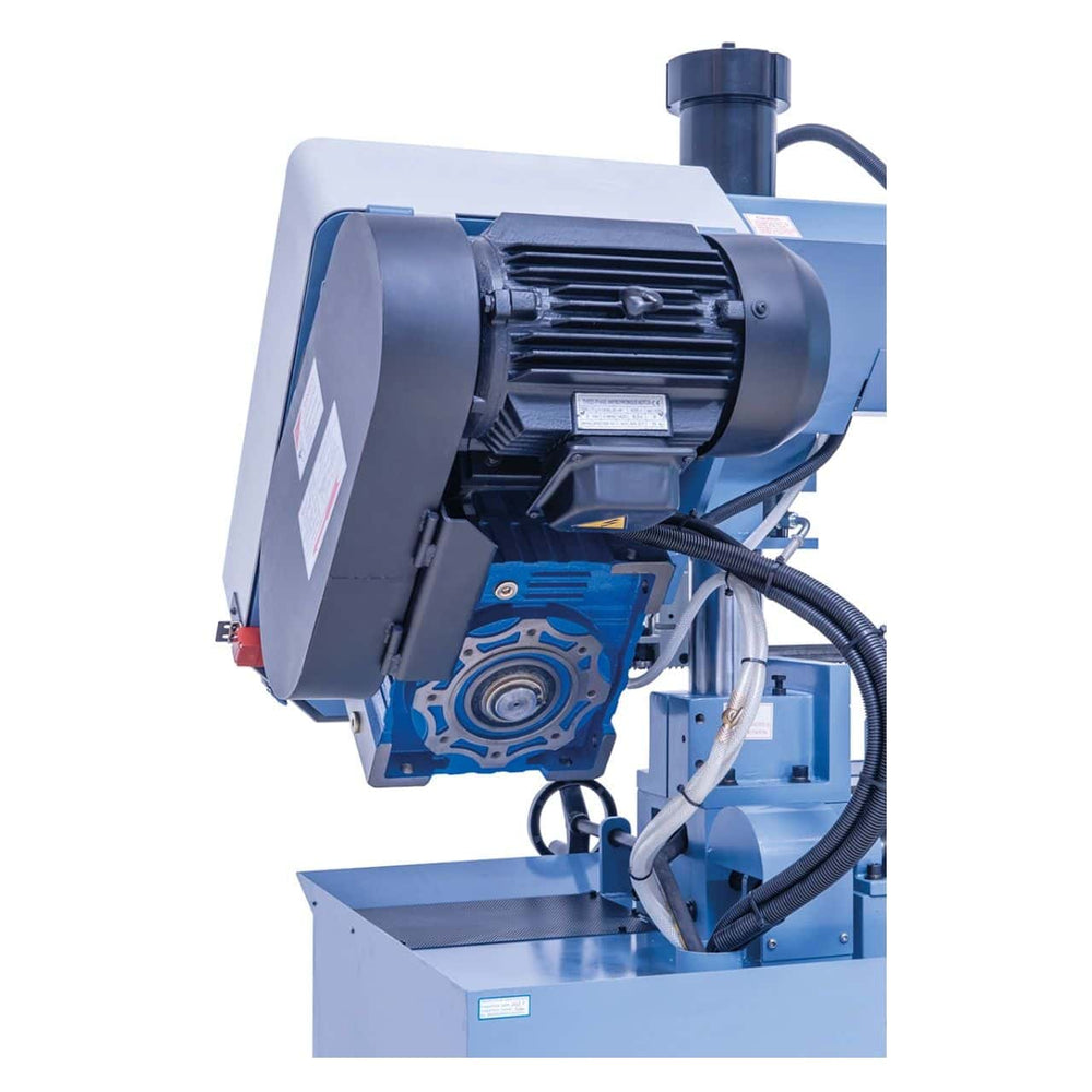 • Trasmissione tramite cinghia trapezoidale: La trasmissione avviene tramite una cinghia trapezoidale che offre 3 diverse velocità di taglio: 27 m/min, 45 m/min e 69 m/min. Questo permette di adattare la velocità di taglio alle specifiche esigenze di lavorazione e ai materiali utilizzati.