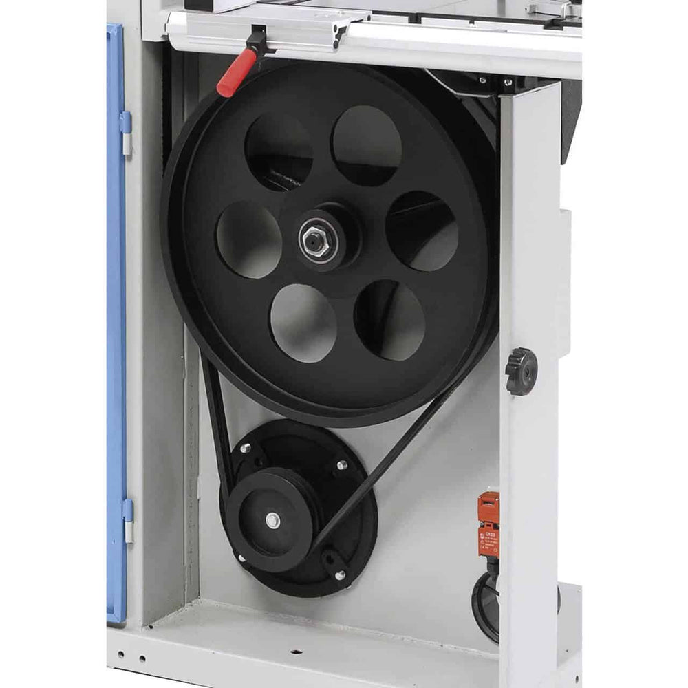 La Bernardo HBS 510 è una sega a nastro professionale per legno, progettata per falegnamerie e laboratori che necessitano di precisione e robustezza. Con una larghezza di taglio di 480 mm e un’altezza utile di 305 mm, permette di lavorare pannelli e masselli di medio-grandi dimensioni. Il piano da 490 × 590 mm, inclinabile da 0° a 45°, garantisce flessibilità per tagli obliqui. Dotata di rotelle in ghisa e guida nastro a 3 rulli, assicura stabilità e precisione, mentre la battuta longitudinale con lente, la battuta obliqua e lo spingitoio favoriscono lavorazioni sicure e accurate. Il motore da 2,2 kW (S1) / 3,0 kW (S6) con alimentazione 230 V / 400 V offre potenza costante, con velocità di taglio di 600 m/min. Con un peso di 220 kg e aspirazione Ø100 mm, è una macchina solida e affidabile per utilizzo professionale.