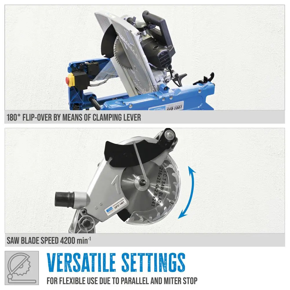 Güde GFO 1801 – Troncatrice radiale multifunzione con piano ribaltabile 180°