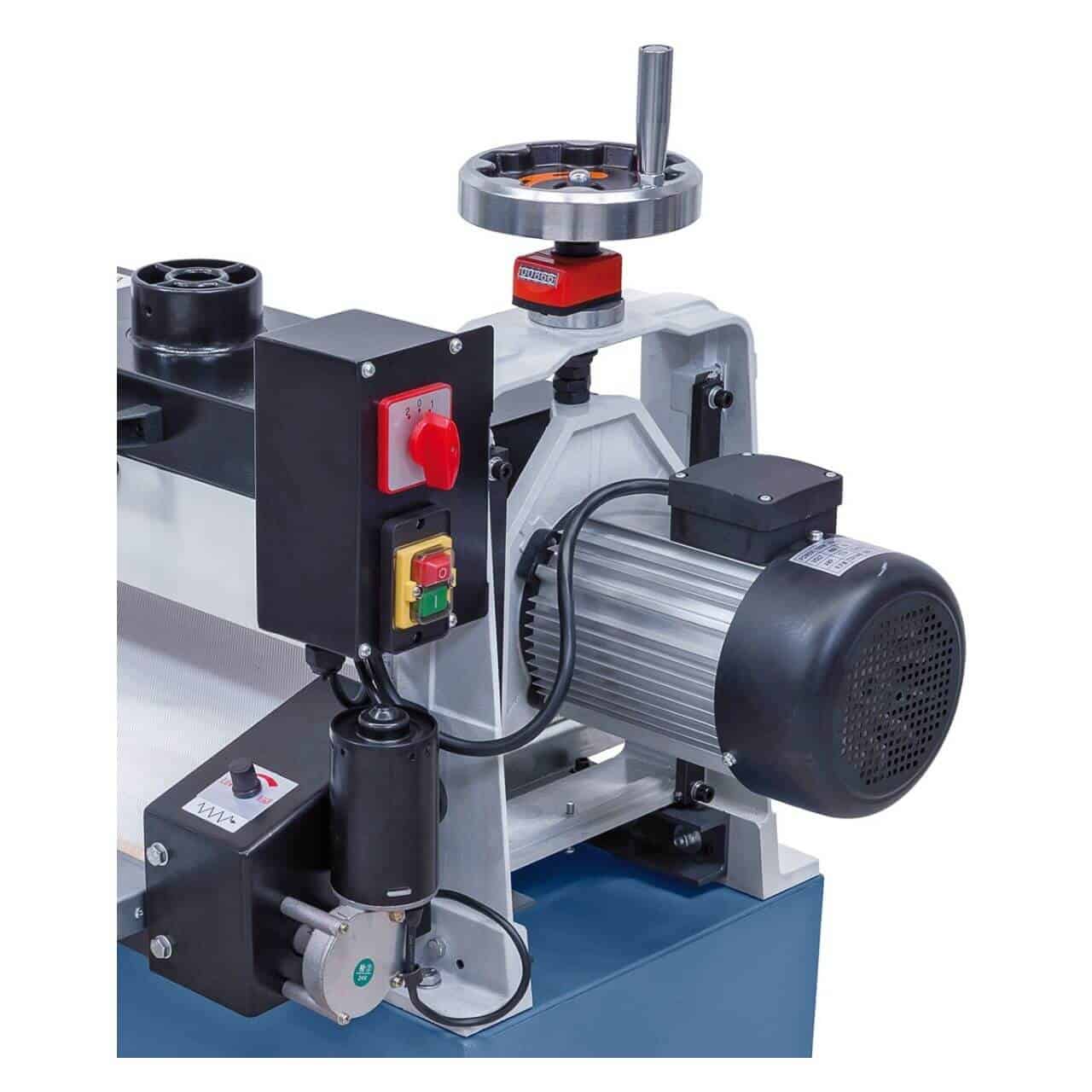 La Bernardo Calibratrice ZSM 560-2 è una macchina professionale per la calibratura e levigatura del legno, pensata per falegnamerie e laboratori che richiedono precisione e solidità. Con una larghezza di smerigliatura fino a 560 mm (1120 mm in doppio passaggio) e uno spessore lavorabile da 5 a 80 mm, offre grande versatilità per pannelli e pezzi massicci. Il tavolo da 500 × 580 mm, estendibile su entrambi i lati, assicura un appoggio stabile anche per elementi lunghi. Dotata di un rullo da Ø130 mm, avanzamento regolabile tra 0,5 e 3 m/min e due velocità di lavoro (750 / 1400 giri/min), permette di adattarsi alle diverse essenze e grane abrasive. Il nastro K100 incluso garantisce ottima finitura, mentre l’attacco aspirazione Ø100 mm mantiene l’ambiente pulito. Con un motore da 1,5 kW – 400 V e basamento chiuso con vano portaoggetti, è compatta, robusta e affidabile (peso 110 kg).
