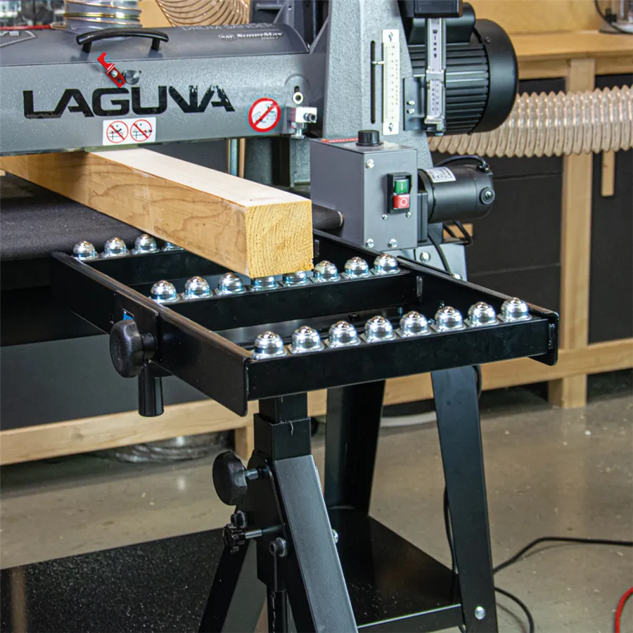 Il Supporto a Sfere Robusto è dotato di tre file di cuscinetti a sfera da 16 mm (8 per tre file), offrendo una superficie di appoggio di 350 × 560 mm. Questo stand è regolabile in altezza da 725 mm a 1140 mm e può essere bloccato in qualsiasi posizione mediante un sistema di bloccaggio a cuneo, garantendo impostazioni ferme e prive di scivolamenti. Costruito solidamente in profili d'acciaio, è capace di sostenere carichi fino a 200 kg. I piedi sono regolabili in altezza per eliminare qualsiasi squilibrio del pavimento e garantire stabilità in tutte le situazioni. Il supporto è completamente ripiegabile, consentendo un comodo stoccaggio o trasporto. Fornisce supporto a materiali di grandi dimensioni, rendendolo ideale per l'uso professionale e commerciale.