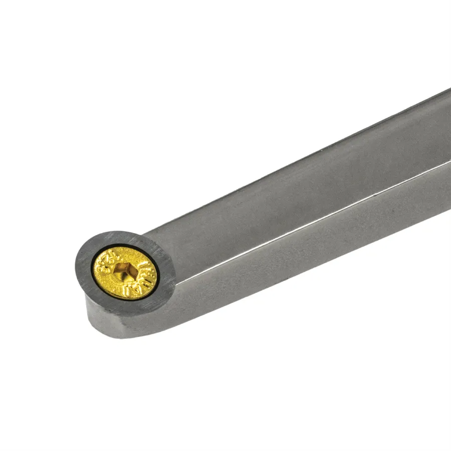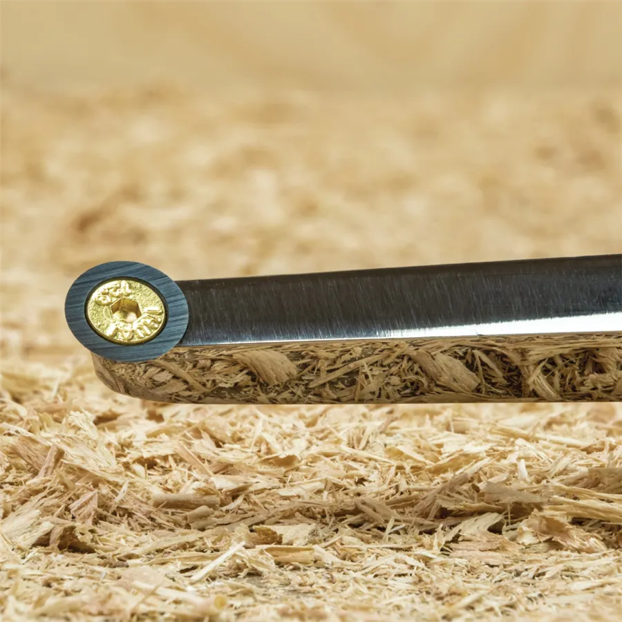 Il design piatto del collo in acciaio cromato permette di appoggiare comodamente lo strumento sul supporto per utensili del tornio. In combinazione con un manico robusto ed ergonomico in legno di faggio, il processo di svuotamento diventa semplice e confortevole. La punta in carburo di lunga durata non necessita di essere affilata; quando si smussa, basta ruotarla. La punta deve essere sostituita non appena il bordo risulta consumato su tutti i lati. Questi togli truciolo creano una superficie molto liscia che non richiede una levigatura complicata.